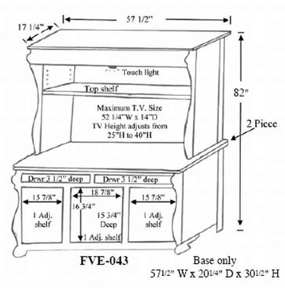 60" W x 20_" D x 82" H . (52_" wide TV area)