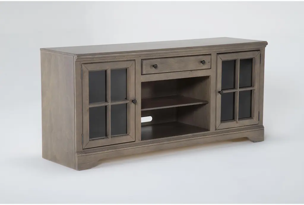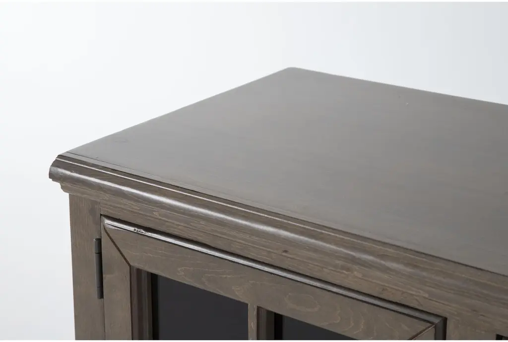 If your TV is your everything, our Preston console is the perfect place to showcase it. Thanks to the natural beauty, strength and quality of solid ponderosa pine, this design will be a sophisticated, sturdy addition to your living room. A timeless, versatile grey finish highlights the wood’s authentic characteristics, and enriches the molding and panel details.