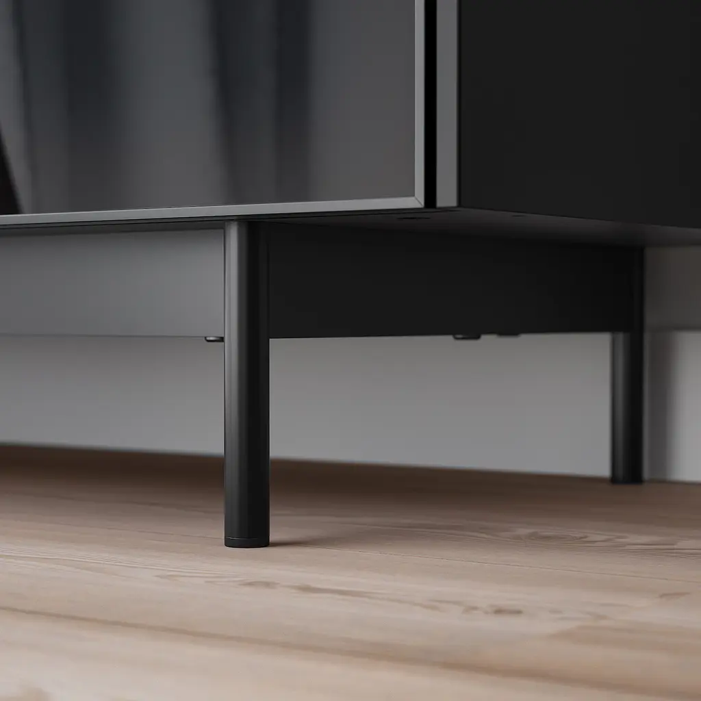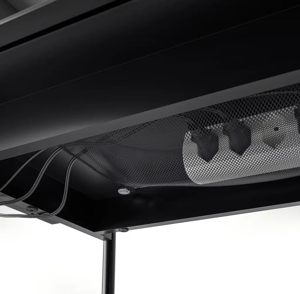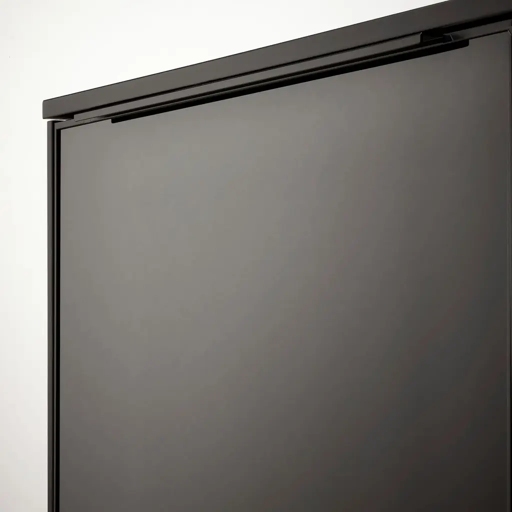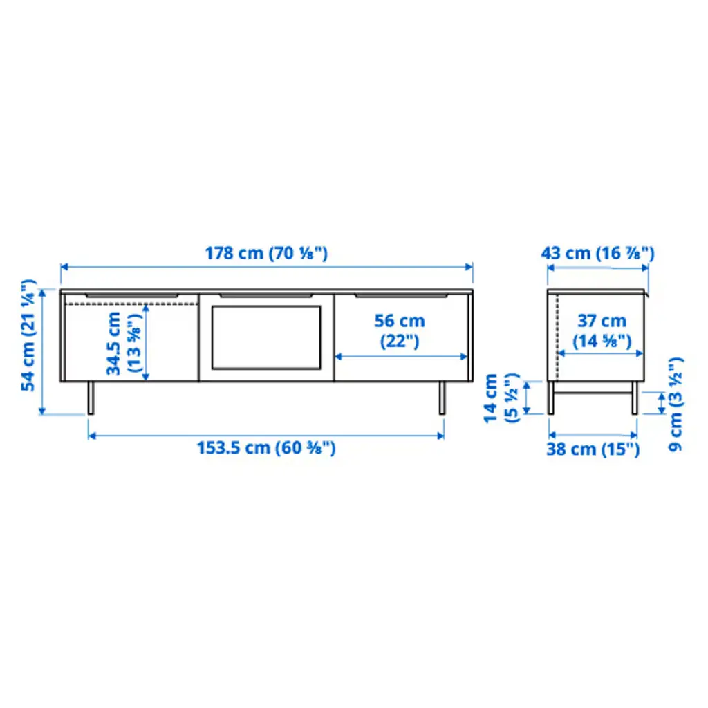 RANNÄS TV unit with doors - black/black glass 70 1/8x16 1/2 ". It’s easy to keep the area around your TV neat and tidy thanks to the clever cable management net that keeps cables in place on the underside of the TV-bench.