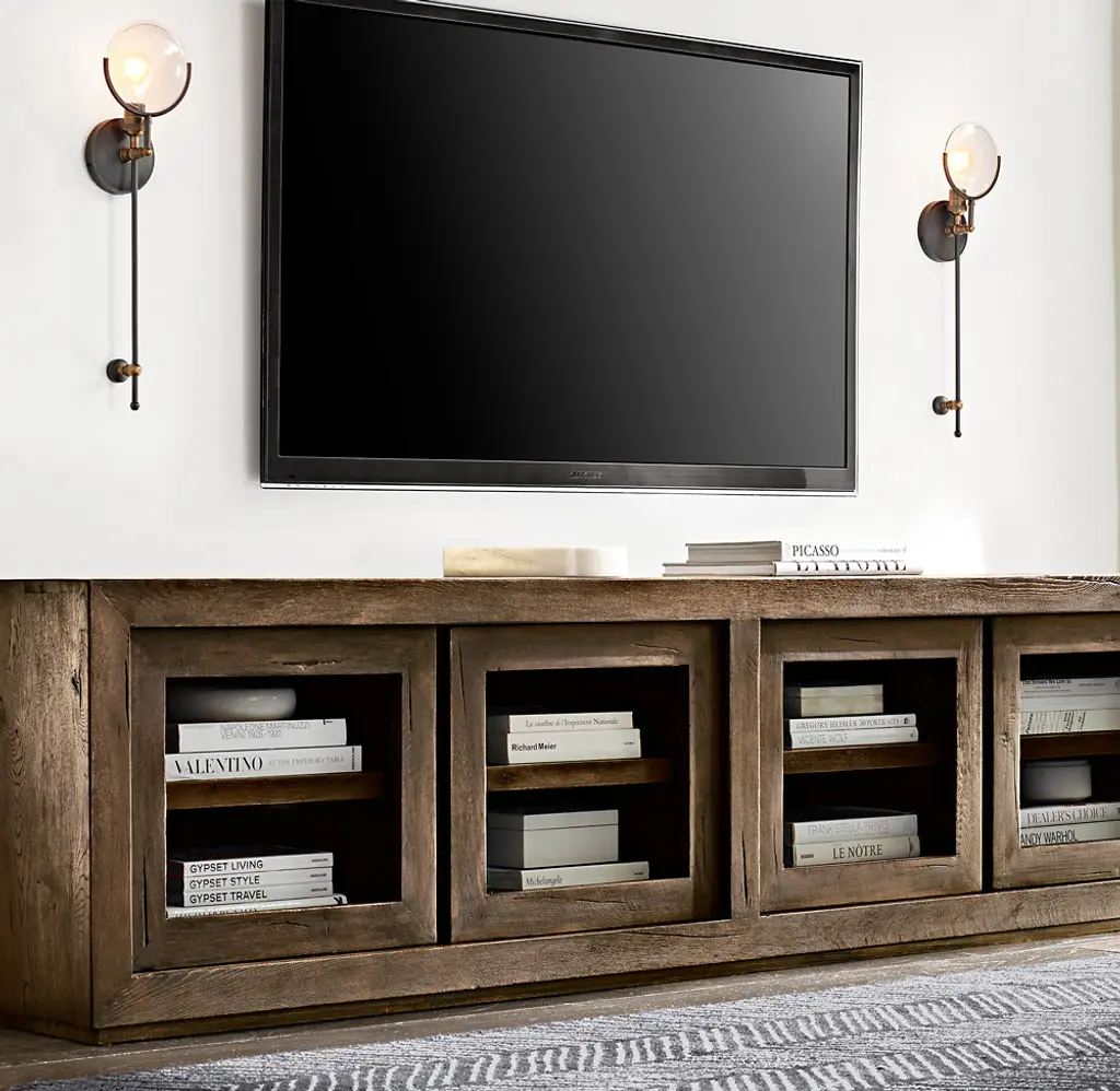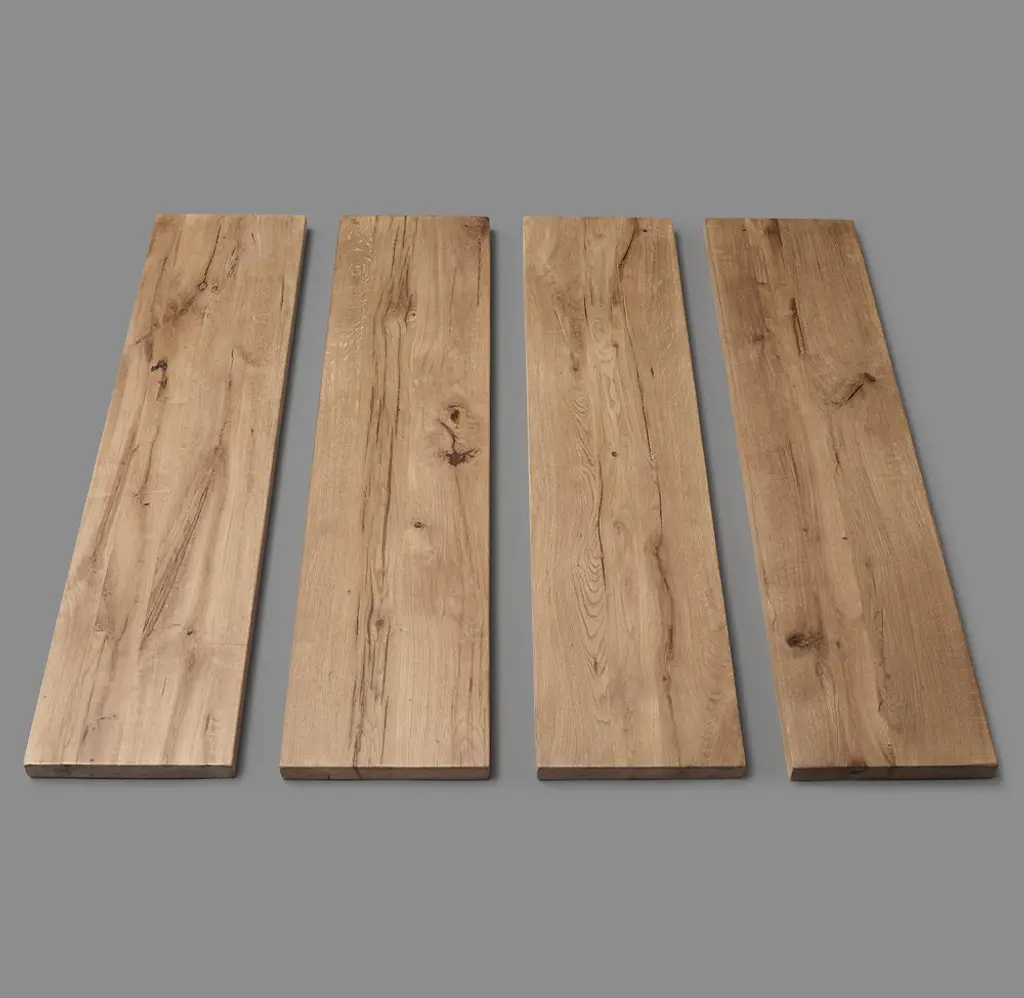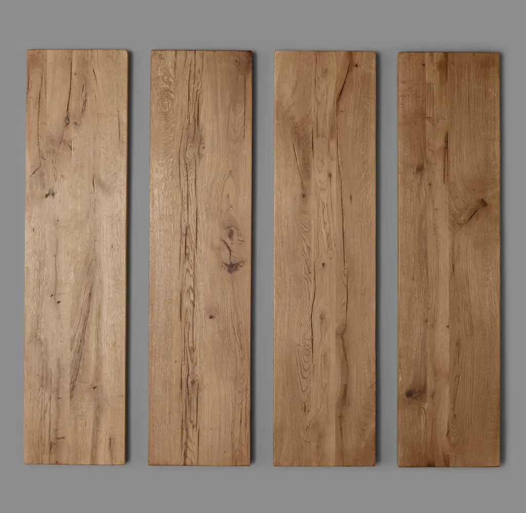 Reclaimed oak timbers from decades-old buildings, with distressed white oak planks for consistency and stability, lend richness to this simple, linear collection from artisan Theo Eichholtz. Each piece is handcrafted of wood that retains its natural character, bearing the occasional knot, nick or crack where no two consoles are exactly the same. SHOP THE ENTIRE COLLECTION