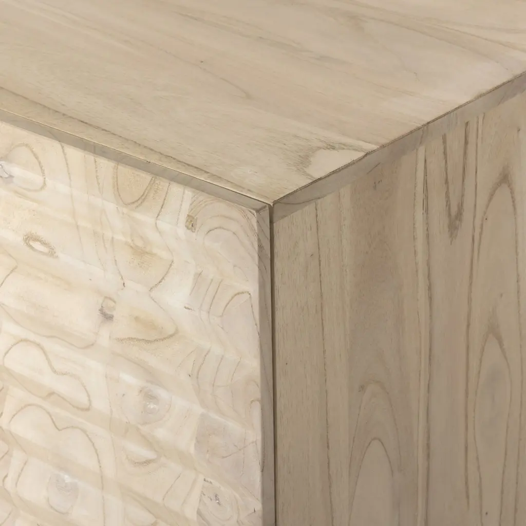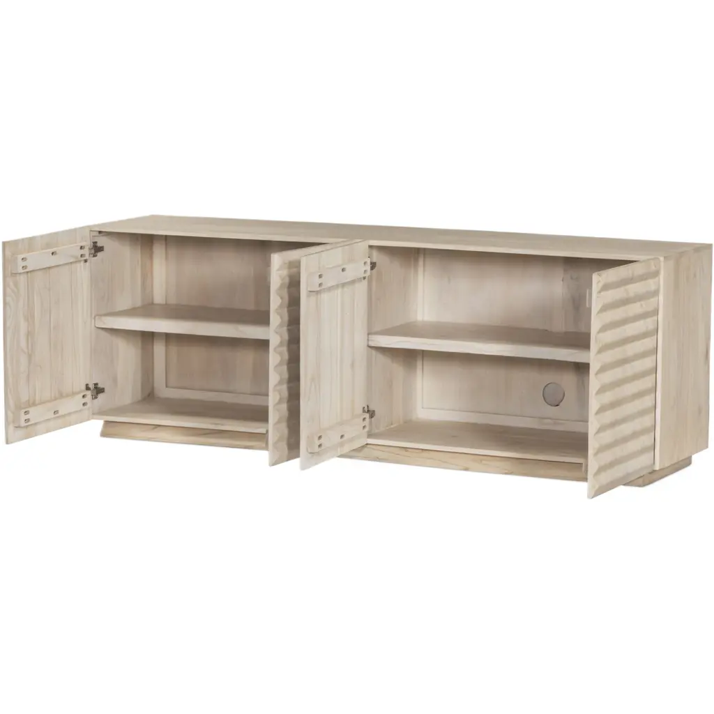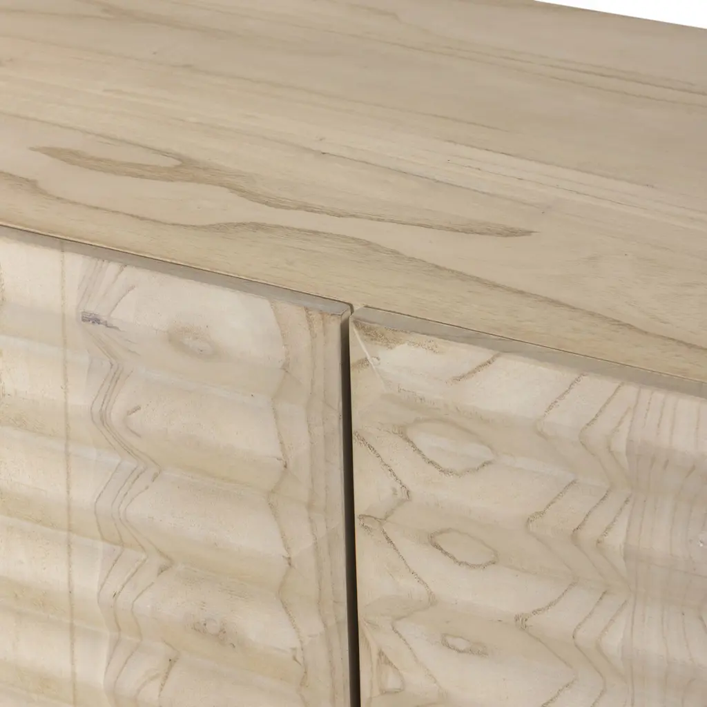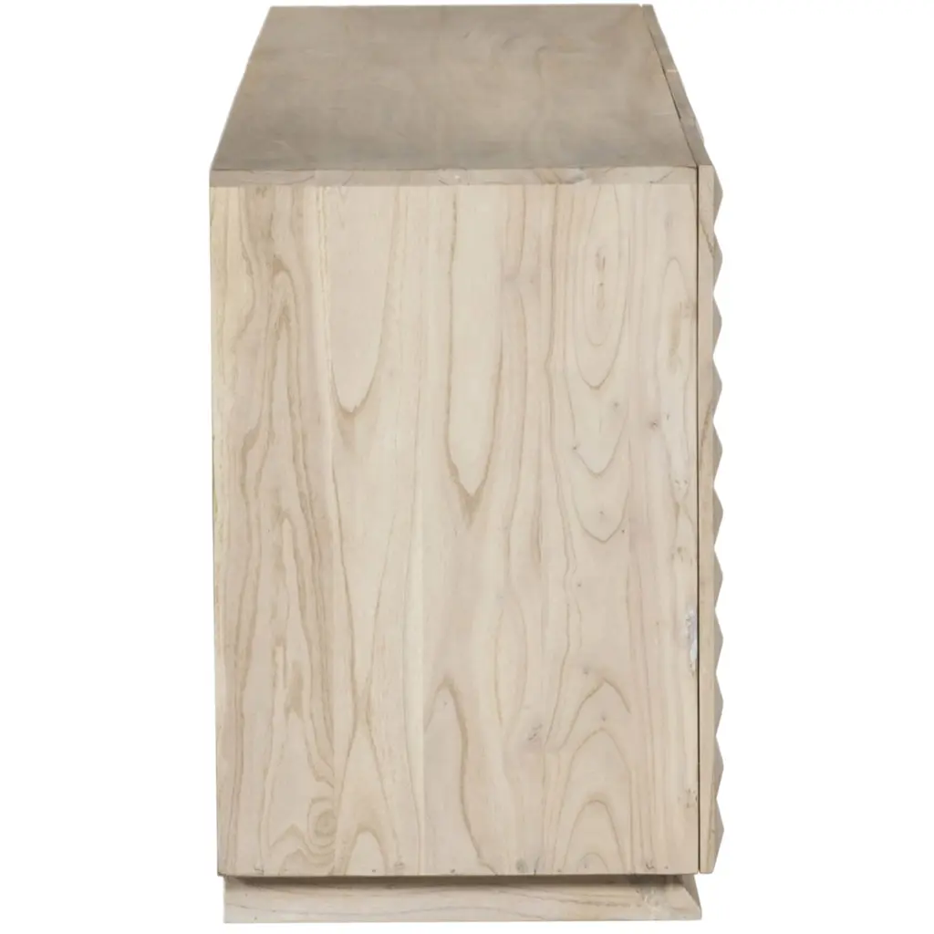 The Revya Media Console is a stunning piece that combines functionality with elegant design. Crafted from neem wood, known for its durability and unique grain patterns, this console is a perfect addition to any living space. The chamfer detailing adds a linear, textured look, enhancing its visual appeal. Designed with practicality in mind, it features ample storage space and dual rear cutouts for efficient cord management, making it ideal for organizing your media essentials. Whether you're looking to elevate your entertainment area or simply add a touch of sophistication to your home, the Revya Media Console is a versatile choice that complements a variety of interior styles.