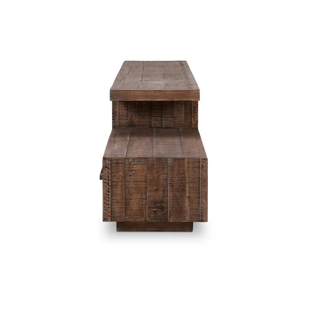 Crafted from high-quality teak wood, this TV stand features a rich, earthy Tuscan finish that highlights the wood's natural grain and texture. The rustic design adds warmth and character, making it a standout piece in any decor.This TV stand offers ample storage and display options with its open shelving and three spacious drawers. The open shelves are perfect for showcasing your media devices, decor items, or books, while the drawers provide concealed storage for remotes, cables, and other essentials.Dimensions: 91" W x 16" D x 20" HCustom finish options are also available. Contact us to learn more.
