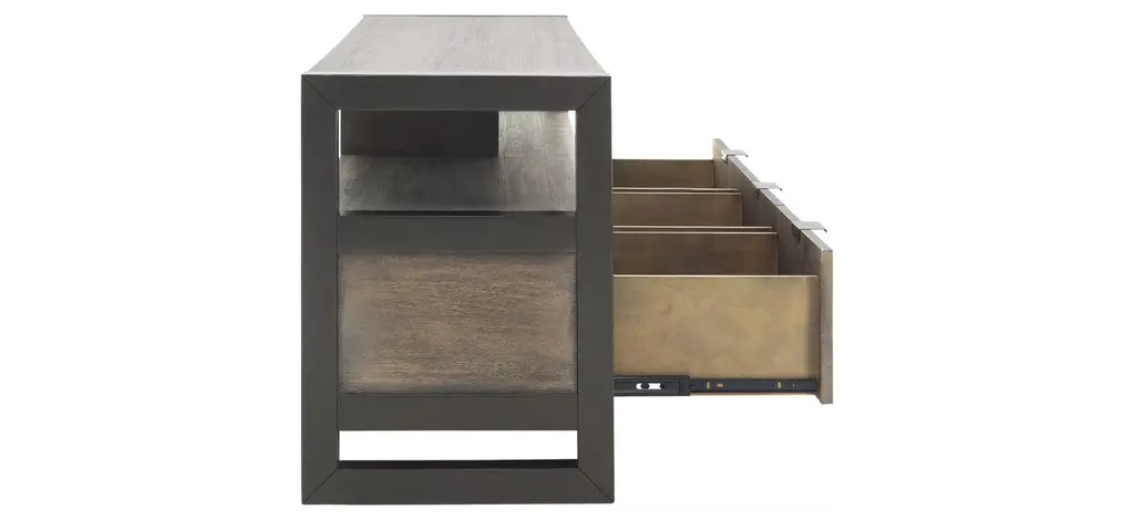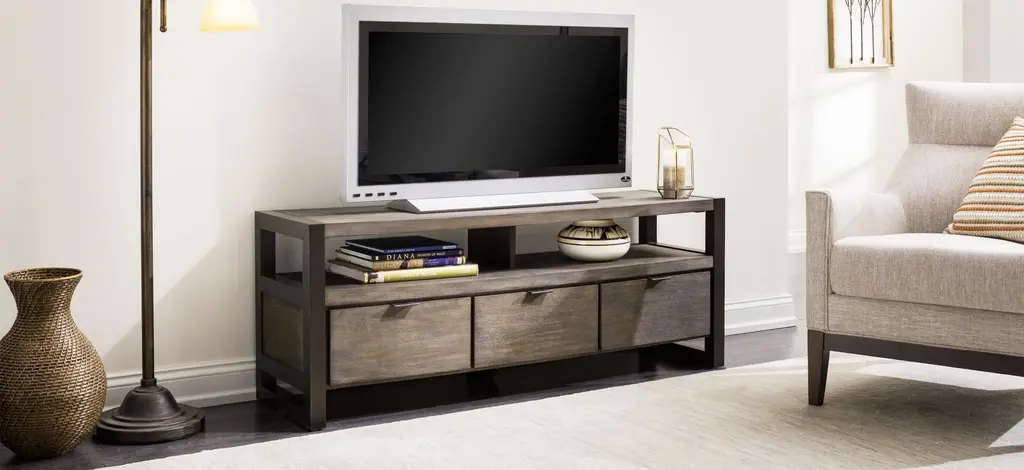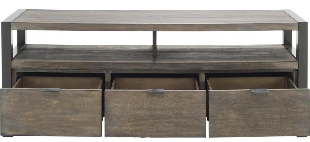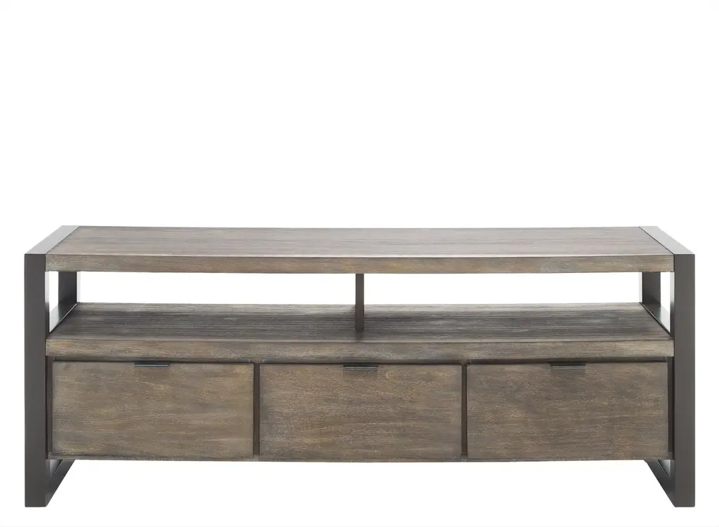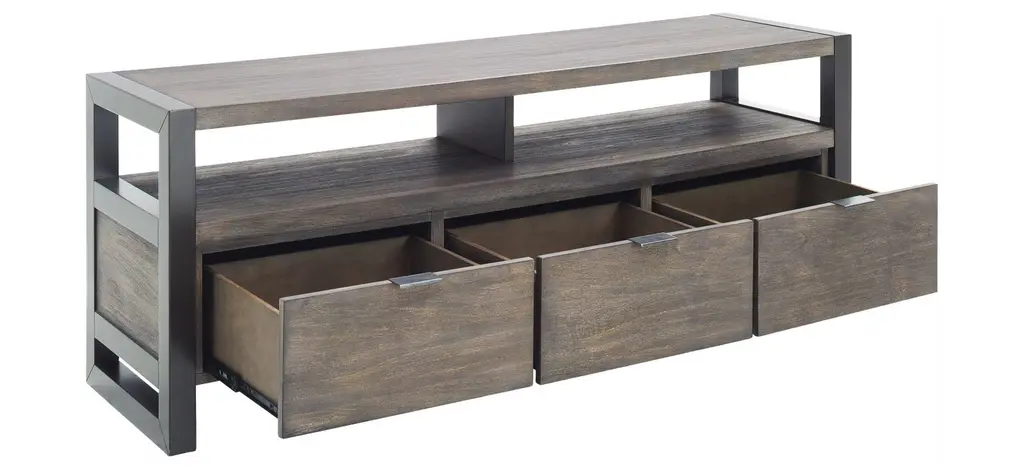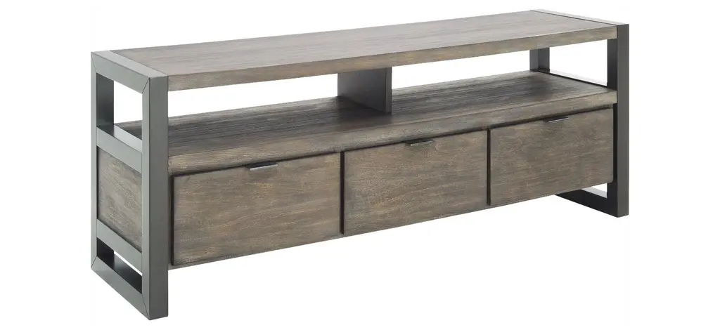 Get a beautiful, yet highly functional entertainment piece with the Ryland 58" TV console. The wood finish gives off a rustic appearance, while the open shelving and drawers will provide plenty of storage for all of your entertainment accessories.