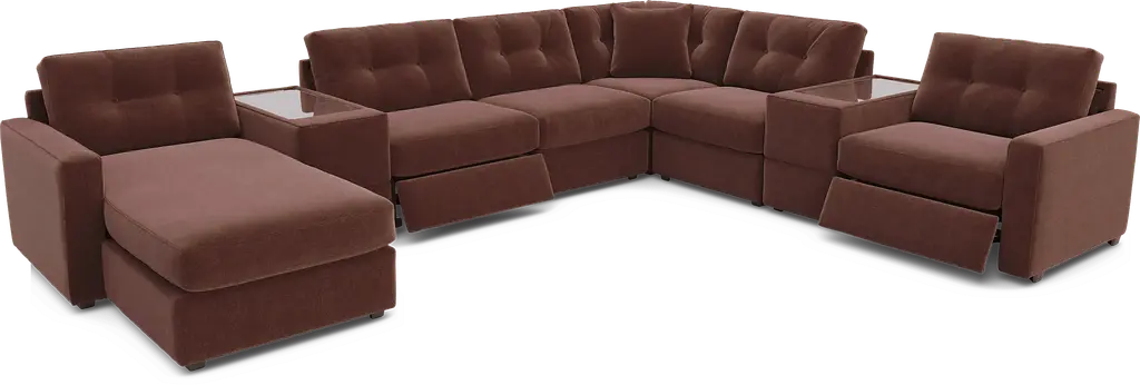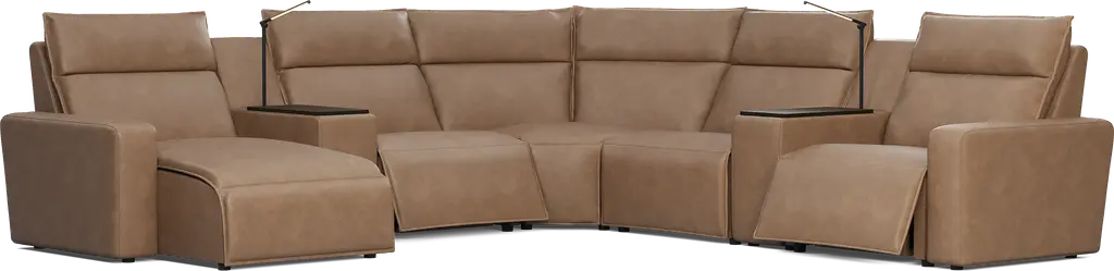 Saddle 7 Pc Dual Power Reclining Modulartwo With Media Consoles