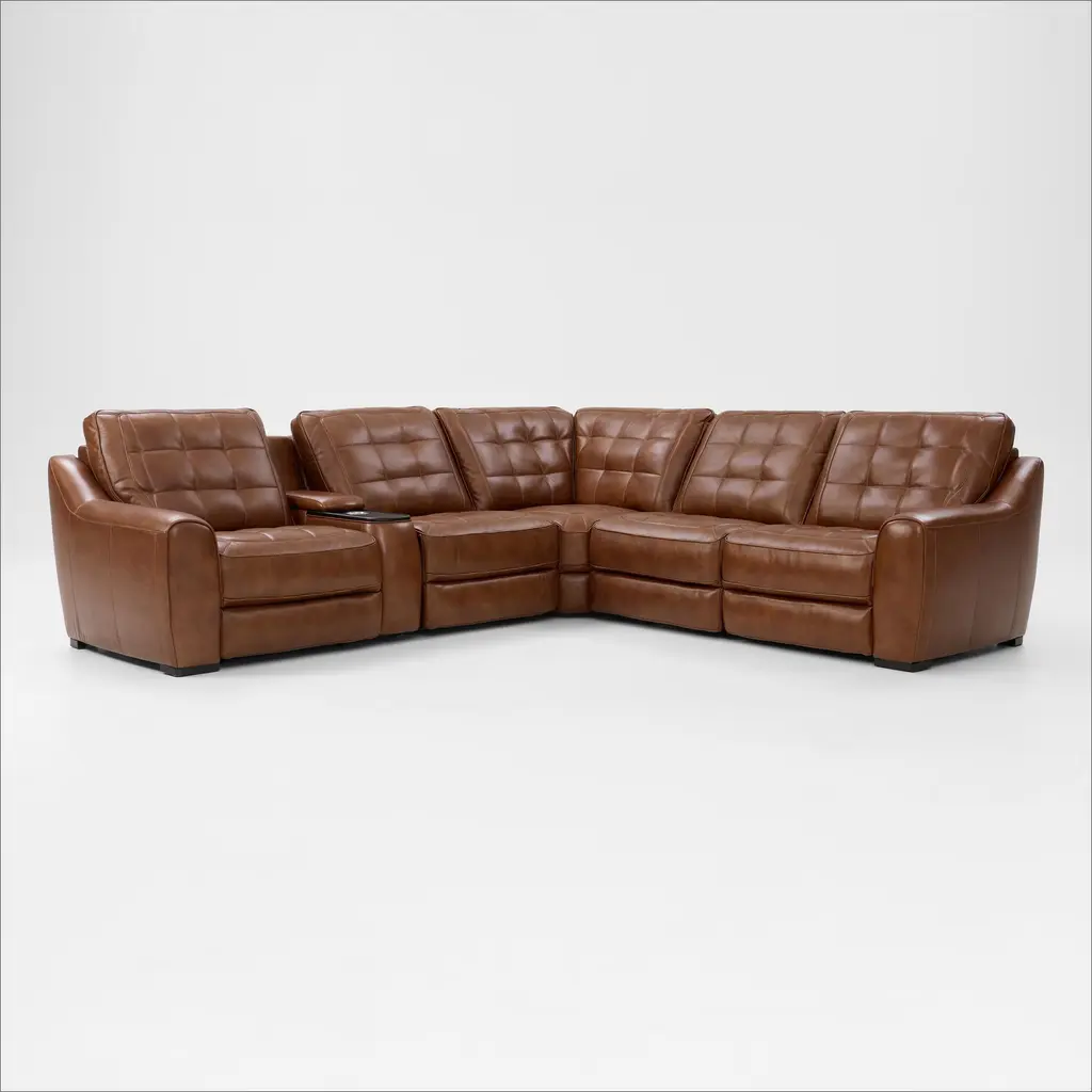Discover the unlimited possibilities of the dual power reclining ModularTwo, thoughtfully designed with both comfort and flexibility in mind. Contemporary in style and upholstered in a plush suede-soft saddle colored microfiber, its tailored silhouette is enhanced by welted track arms and tufted back cushions for a look of refined elegance and serenity. Each piece is upholstered on all sides, offering endless opportunities for both reconfiguration as well as individual use. Dual power reclining functionality allows for easy adjustment in the headrest and footrest, providing the ultimate in personalized comfort. Two consoles include bluetooth-enabled speakers, retracting cupholders and wireless charging. Select a preconfigured design or visit a showroom to learn about individual components and create the modular solution perfect for your space and style. Upholstery: 100% Polyester. Cleaning Instructions: Use water based cleaning agents or foam.