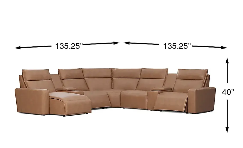 Discover the unlimited possibilities of the dual power reclining ModularTwo, thoughtfully designed with both comfort and flexibility in mind. Contemporary in style and upholstered in a plush suede-soft saddle colored microfiber, its tailored silhouette is enhanced by welted track arms and tufted back cushions for a look of refined elegance and serenity. Each piece is upholstered on all sides, offering endless opportunities for both reconfiguration as well as individual use. Dual power reclining functionality allows for easy adjustment in the headrest and footrest, providing the ultimate in personalized comfort. Two consoles include bluetooth-enabled speakers, retracting cupholders and wireless charging. Select a preconfigured design or visit a showroom to learn about individual components and create the modular solution perfect for your space and style. Upholstery: 100% Polyester. Cleaning Instructions: Use water based cleaning agents or foam.