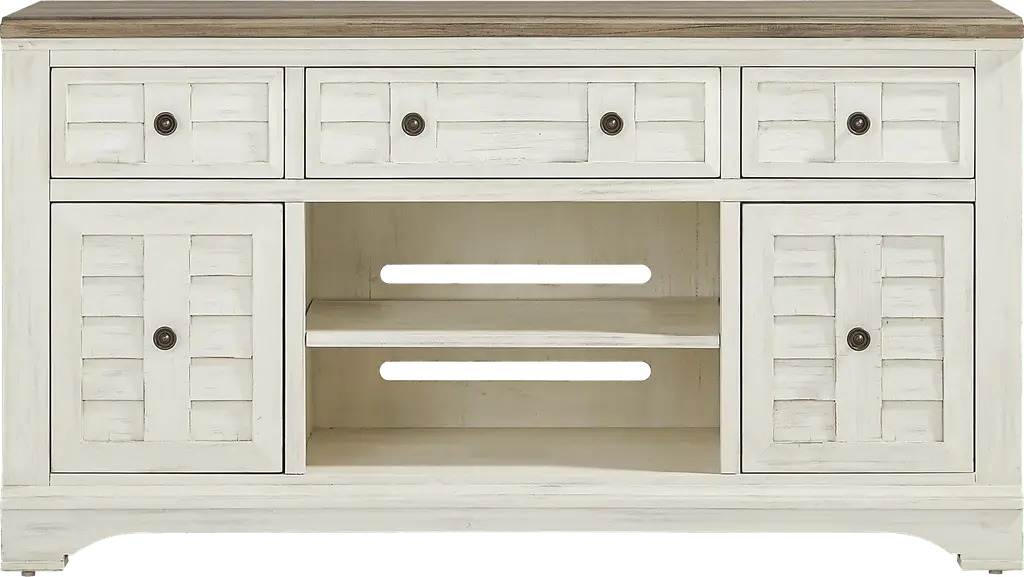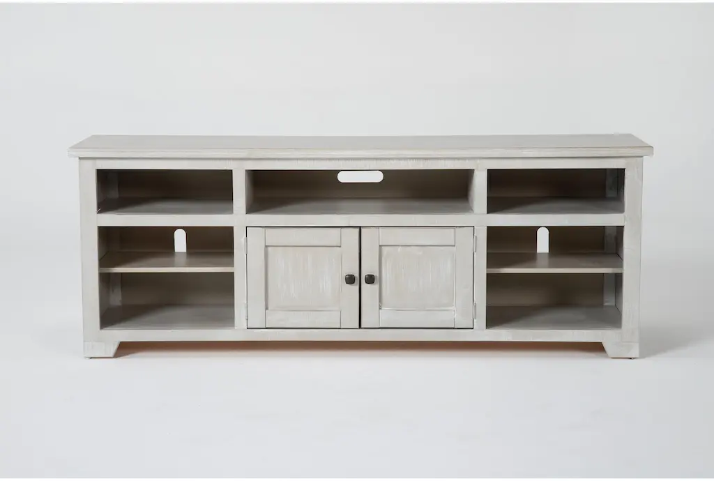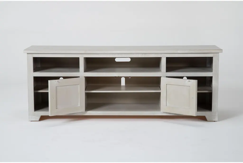 Watching your favorite shows and movies just keeps getting better with our Santa Clara TV stand. A sturdy, charming foundation for your screen and media essentials, this design features open and closed storage, plus cord cutouts to keep all of your wires under control.
