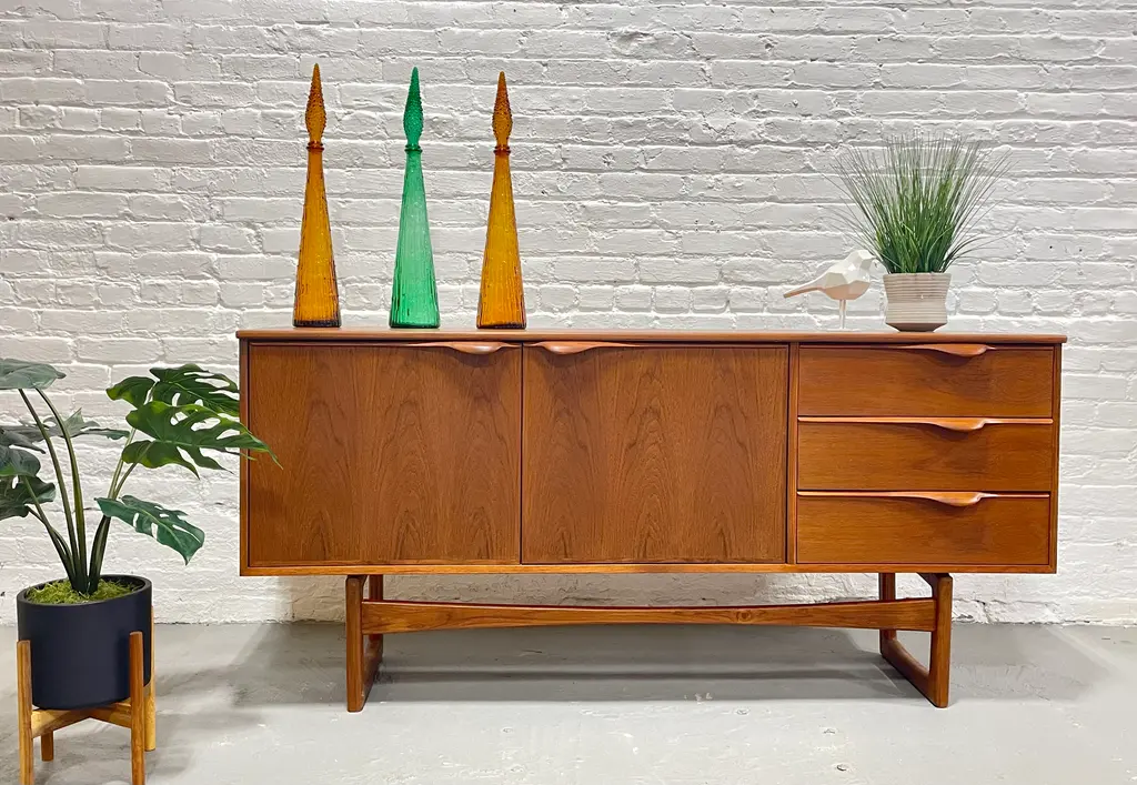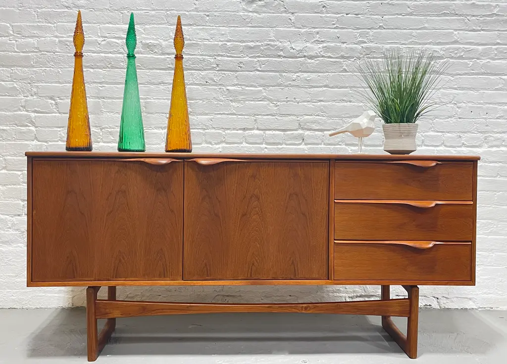 Sculpted Mid Century Modern Danish Styled Credenza Media Stand
