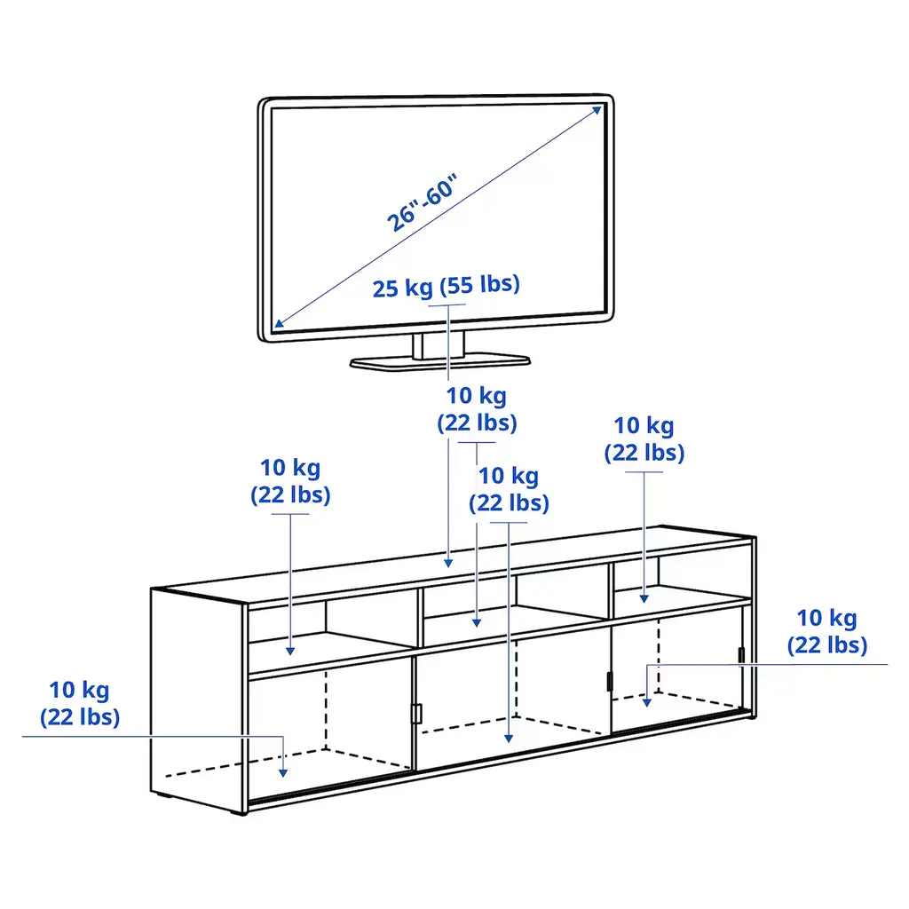 SPIKSMED TV unit - light gray 61 1/8x12 5/8x17 1/4 ". An easy-to-place TV bench with clean lines that has both open and closed storage. The sliding doors allow you to place the storage where you need it and enjoy a larger area to place furniture since the doors don’t open out over any floor space.