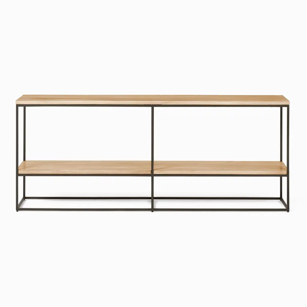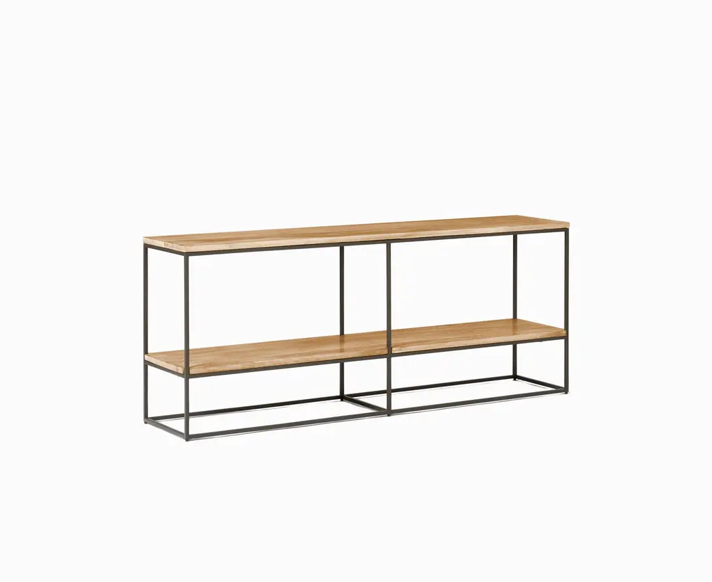 Slim frame makes it an easy fit in any style home. Made from sustainably sourced mango wood. Two open shelves offer ample storage space. Contract Grade for unmatched durability.