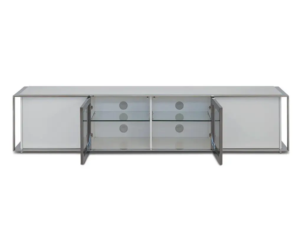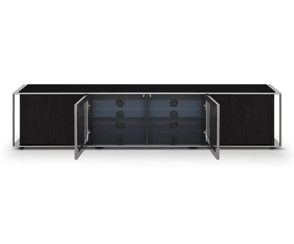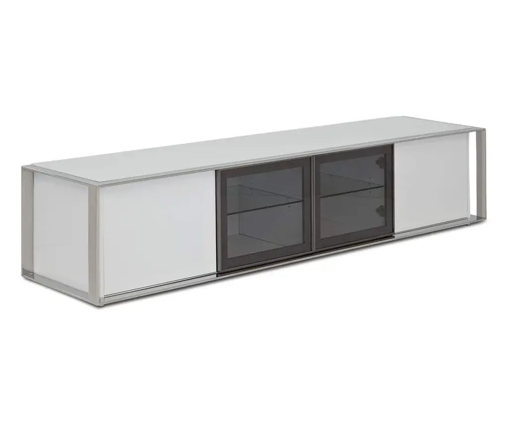 The use of wood and smoky glass in the Svante Media Stand strike a visually appealing contrast, lending to the masculine elegance of this staple for your entertainment area. While maintaining a low profile, it does not sacrifice storage capacity. Tuck away media equipment or other items you would like to remain out of sight behind the two doors on either end and display other accessories behind the two tinted glass doors in the center.