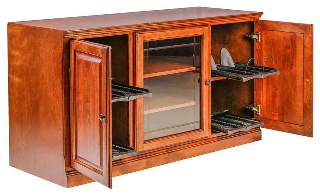 Traditional Alder Tv Stand With Media Storage And V-Groove Glass