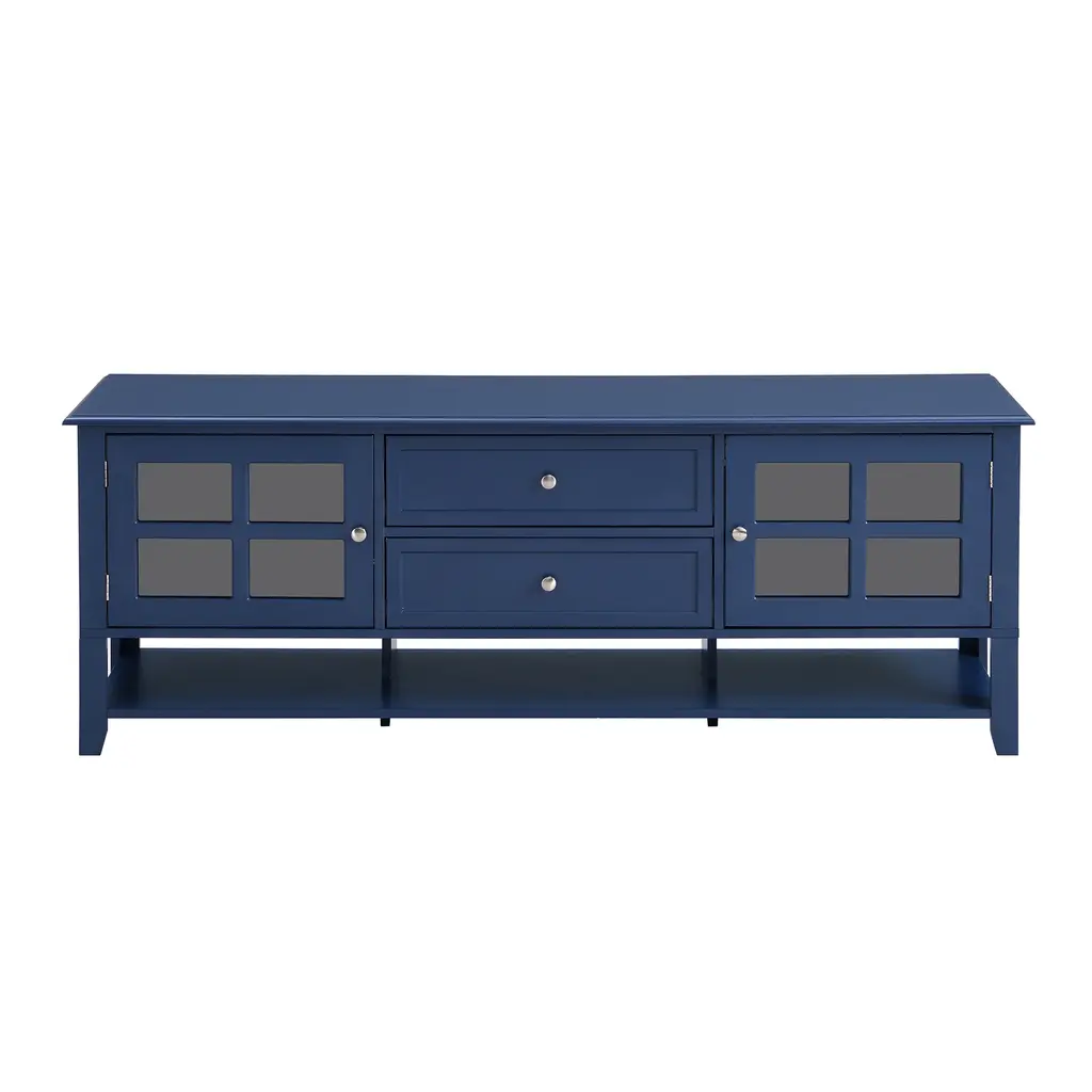 Dimension & Weight Dimension 59.1'' * 15.7'' * 21.7'' Weight 78.26lbs Capacity Panel:150 lbs/ Drawer: 18lbs/ Shelf:50lbs Additional Information Product Name TV Stand Main Color Blue Capacity Max:100lbs/ Panel: 20lbs Material Cabinet: MDF Board/ Hardware: Metal Country of Origin China Private Cabinets Included Yes Number of Private Cabinets 2 Drawerst Included Yes Number of Drawers 2 Level of Assembly All Assembly Required Recommended Number of People for Assembly 2 Adult Assembly Required Yes Notice The color match of the actual product and the product shown in the picture may not be exactly the same. Affecting factors such as lighting, screen settings and resolutions may contribute to the inaccuracy of the color match.
