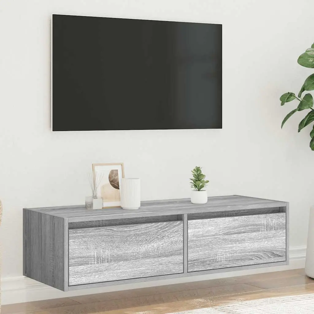 This elegantly designed TV cabinet mixes form and function, giving you the perfect storage space for your multimedia devices while enhancing the look of your living room. With a modern Gray Sonoma finish, it blends seamlessly into any decor, whether in a cozy lounge or a stylish bedroom. Built-In LED Lighting: The RGB LED lights let you change up the mood in your entertainment area with loads of colors to choose from. Spacious Storage: With two drawers and an open shelf, this cabinet has all the space you need for your multimedia devices, reading materials, and magazines, keeping everything easily reachable. Modern Aesthetic: Its Gray Sonoma finish and matte feel offer a clean, minimalist vibe, making it just right for any modern home. Durable Engineered Wood: Made from high-quality engineered wood, this TV cabinet is built to last. The water-resistant surface keeps it looking sharp, even with regular use. Compact Size: Measuring 39.4 in long, 14.0 in wide, and 9.8 in high, this medium cabinet fits perfectly in smaller spaces while providing plenty of storage without crowding your room.