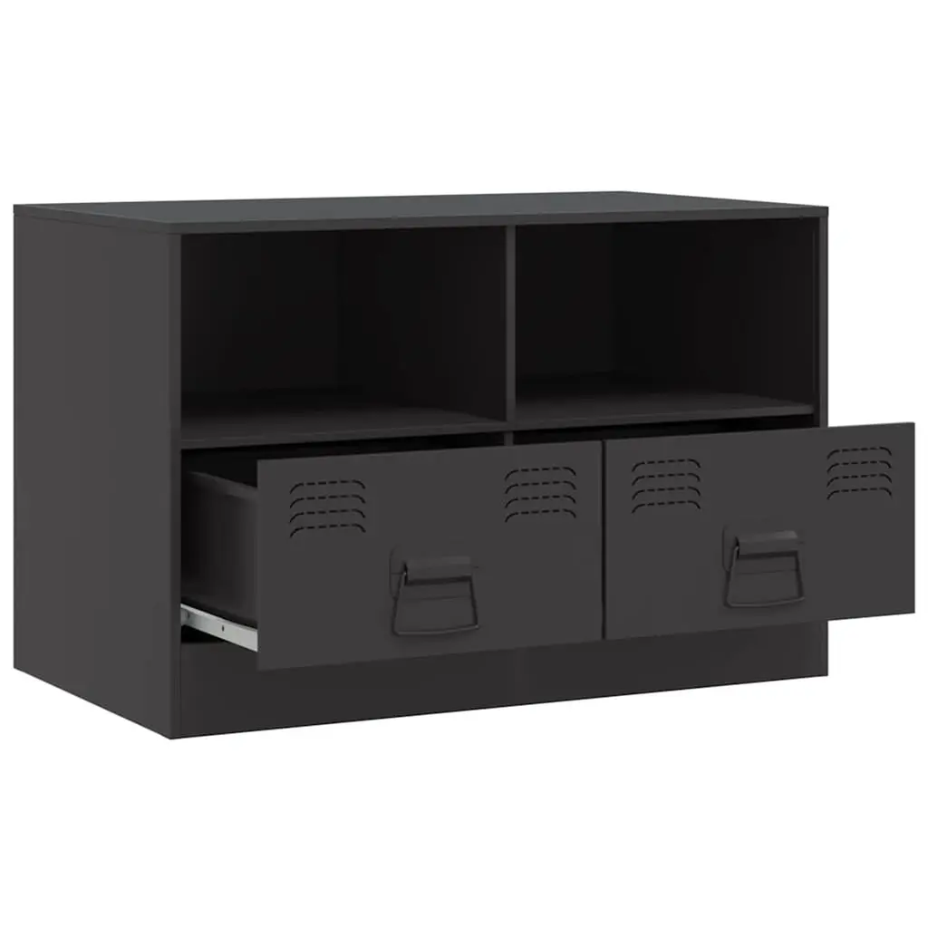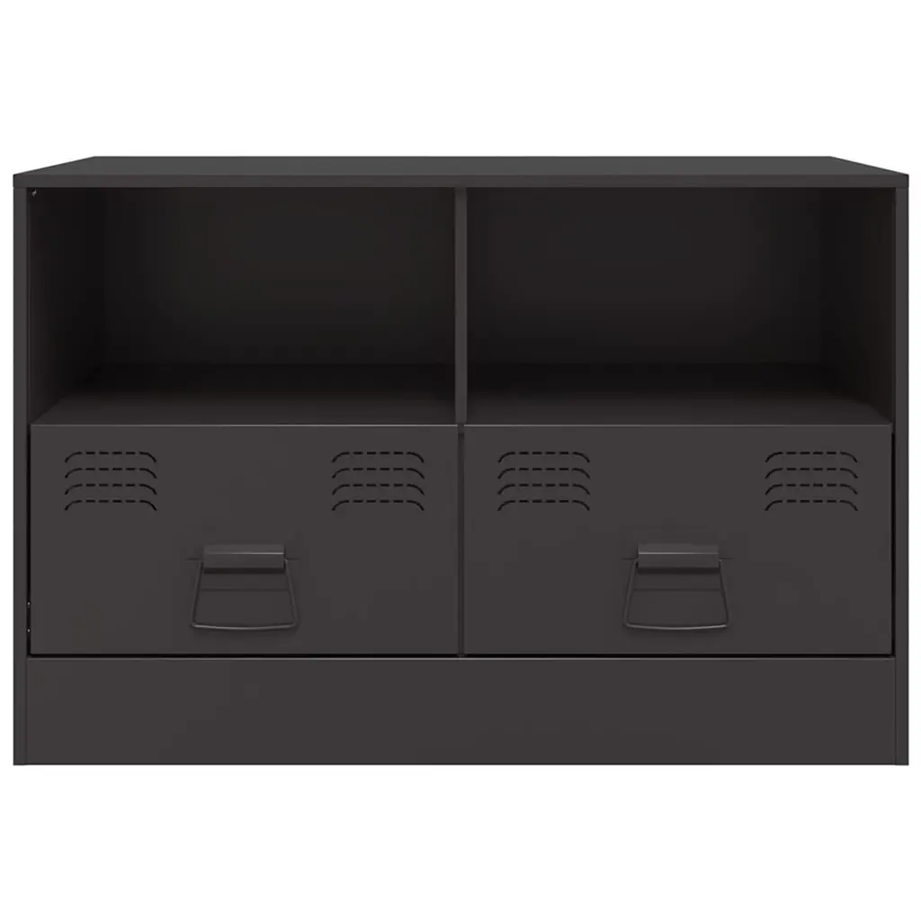 This modern black TV cabinet mixes style and practicality, making it perfect for any living room or office. Made from tough cold-rolled steel, it has a sleek look that works with different décor while offering great storage with its two drawers and two metal shelves. Ample Storage: With two large drawers and two strong shelves, it's got loads of room for your media gear, decorations, and essentials, keeping everything tidy and easy to grab. Contemporary Design: Its sleek, modern look features clean lines and a minimalist vibe, making it a stylish centerpiece in your entertainment spot and blends nicely with other furniture. Durable Materials: Made from cold-rolled steel coated with powder, this cabinet not only looks fab but also lasts and resists daily wear, making it a smart choice for your home. Versatile Use: Perfect for all kinds of rooms, this TV cabinet works well in lounges, offices, or media rooms, fitting various gadgets and offering practical storage solutions. Easy Maintenance: Designed for indoor spaces, just wipe it down with a damp cloth to keep it looking great with no fuss.