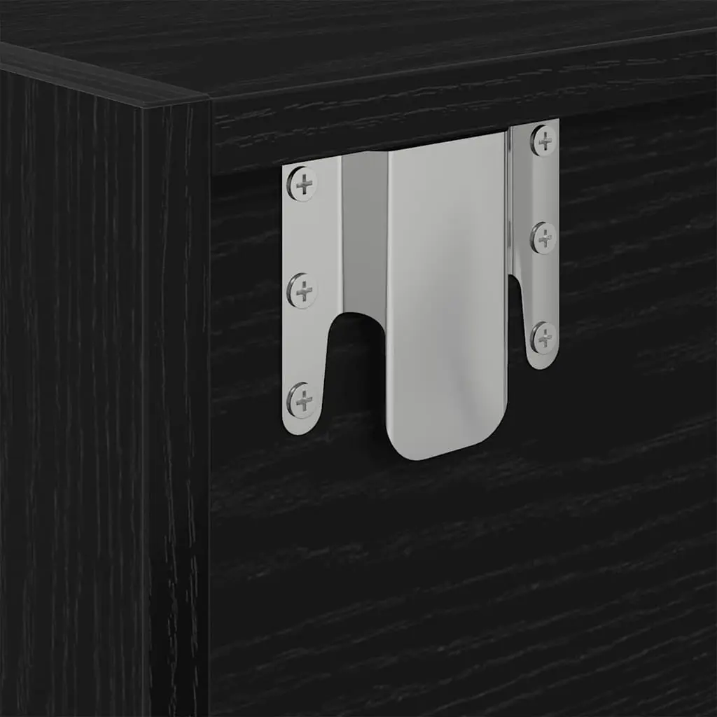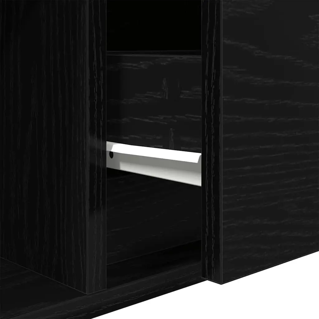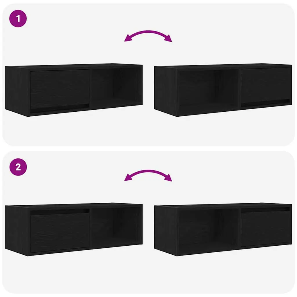 This modern wall-mounted TV cabinet set is a sleek and stylish solution for your living space. It's perfect for keeping your entertainment area tidy while boosting your home decor. Made from engineered wood, the black oak finish not only ensures durability but also gives a contemporary vibe that blends well with different interior styles, making it a hit for both compact and spacious rooms. Floating Design: This floating TV cabinet design saves precious floor space, allowing for a clean and spacious environment, enhancing the overall aesthetics of your living room.Ample Storage: With enough room to hold your multimedia devices, DVDs, and decor items, it efficiently keeps your space organized and clutter-free.Modern Style: The modern, smooth finish complements any interior decor, providing both a functional and stylish addition to your home.Durable Construction: Made from engineered wood, this cabinet is built to withstand daily use, ensuring a long-lasting piece of furniture for your entertainment essentials.Easy Installation: All required mounting hardware is included, making it straightforward to securely attach the cabinet to your wall in just a few simple steps.