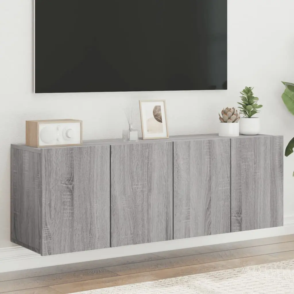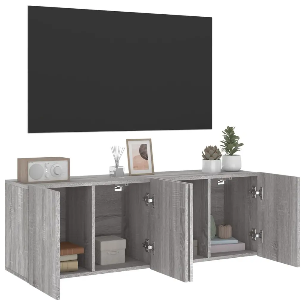 This TV cabinet set is a perfect mix of function and style, made to enhance any living room or office. With a classy Grey Sonoma finish, every piece serves as a stylish storage option while boosting your home’s decor. It sets an elegant vibe for your entertainment and downtime. Ample Storage: With four storage compartments, this set has loads of room to keep your DVD players, receivers, and media gear organized. It keeps your entertainment area tidy and accessible.Wall-Mountable Design: Great for smaller spaces, this design helps keep the room looking neat by lifting your gear off the floor.Modern Aesthetic: Its clean lines and contemporary finish fit in well with any decor.Quality Material: Made from solid engineered wood, it’s built to last while looking good.Smooth Texture: The nice surface makes it easy to clean, helping it stay looking sharp.