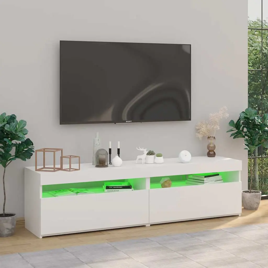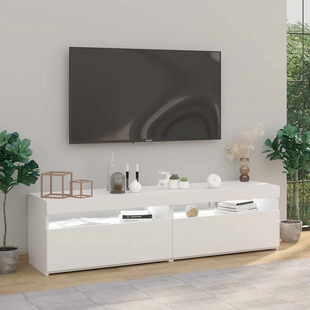 This 2 Piece TV Cabinet Set features a lovely high gloss white finish, adding a modern touch to any living room. Its elegant and minimal design makes storing media and accessories practical, making it a perfect choice for contemporary home decor. Stunning Appearance: The high gloss white finish reflects elegance and style, making it a centerpiece in the living room.Built-In LED Lighting: Integrated RGB LED lights create a soft, soothing ambiance, enhancing your entertainment experience.Spacious Design: Ample storage space accommodates all your media devices, ensuring a clutter-free living area.Quality Materials: Made from durable engineered wood, this unit promises longevity and sturdiness.Versatile Use: Ideal for various settings and styles, perfect for any modern decor.