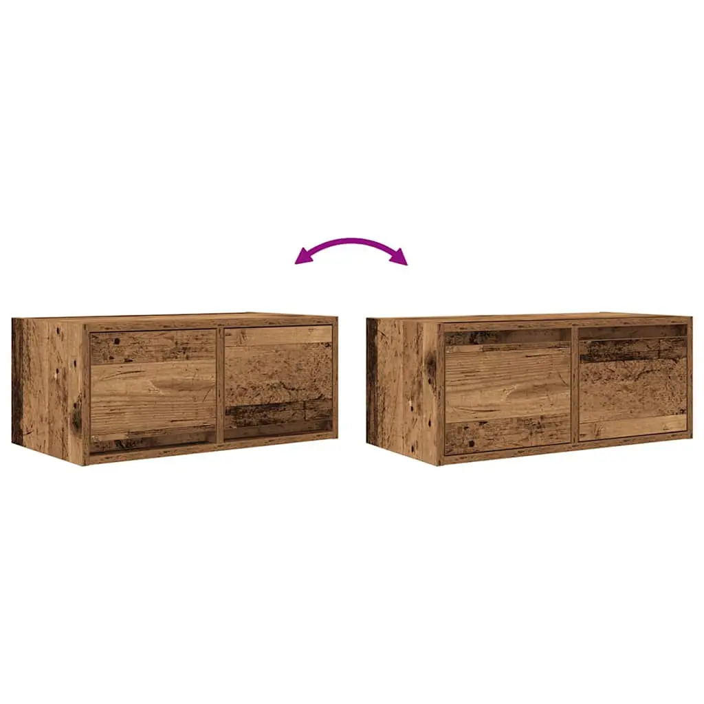 This modern wall-mounted TV cabinet set offers a stylish and functional way to organize your entertainment gear. With its eye-catching old wood finish, this cabinet perfectly combines contemporary style with practical storage, fitting right into any living room. Ample Storage: Tons of space to store all your gadgets and bits, with four drawers keeping remotes and games off the floor. It’s all about keeping things tidy and easy to find!Wall-Mounted Design: This saves floor space, making your room look neat and tidy. By hanging it up, you free those precious inches below for a more open feel.Sturdy Construction: Made from strong engineered wood, this cabinet can handle daily use and keep everything secure. It can hold up to 132.3 lbs, so your TV and devices are safe and sound.Sleek Finish: The matte finish not only looks stylish but is easy to clean, hiding fingerprints and smudges, so it always stays looking fresh.Modern Style: Its clean lines and smooth look fit right in with modern decor, while the warm old wood color works with tons of different color schemes, giving a classy touch to any space.