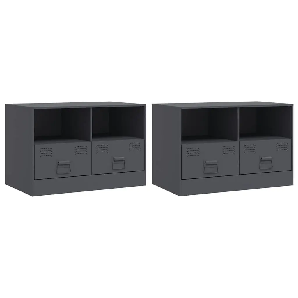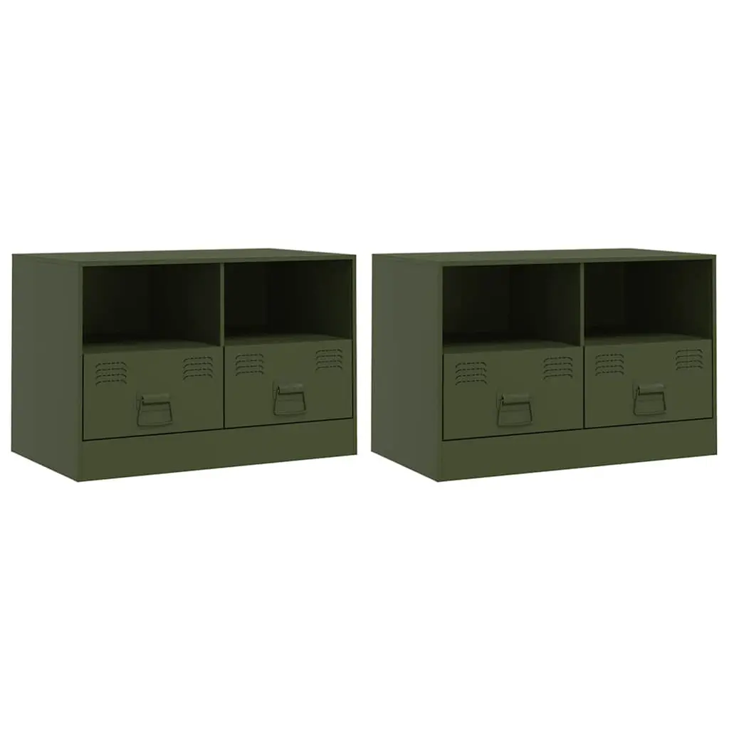 Vidaxl Tv Cabinet Set Of 2 Olive Green Cold-Rolled Steel Medium