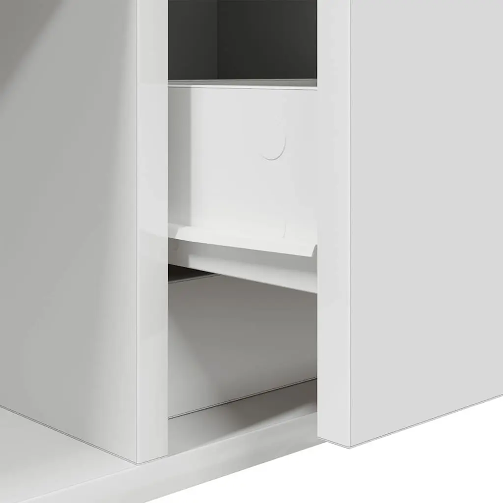 This modern TV cabinet is a stylish yet practical addition, perfect for sprucing up your living room or entertainment area. Made from quality engineered wood, it features a sleek white finish that adds a touch of class while suiting all sorts of décor styles. Ample Storage Space: This TV cabinet set has multiple compartments so you can keep your devices, DVDs, and decor organized and within reach. Sleek White Finish: The matte non-reflective surface gives your room a calm and inviting feel. Engineered Wood Frame: Made from tough engineered wood, it lasts a long time and holds up to 132 lbs for all your entertainment needs. Wall-Mounted Design: This clever setup saves floor space while looking sleek, perfect for smaller rooms or minimalist vibes. Easy Assembly: All the bits you need to mount it come with the cabinet, and two people can put it together quickly with just a screwdriver.