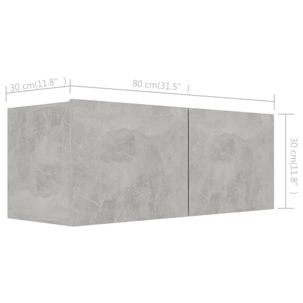 This Modern Wall-Mounted TV Cabinet Set is designed to fit in with all sorts of interior styles, from sleek city apartments to cozy family homes. With its classy concrete grey finish and smooth design, it really spruces up any living room, creating a stylish yet practical centerpiece that keeps your space tidy and welcoming. Stylish Design: The trendy concrete grey finish adds a nice touch that elevates your room's vibe and fits well with modern decor.Ample Storage: With four cabinets to choose from, this set gives you plenty of room to organize and show off your media gear, books, and decor, keeping everything tidy and at hand.Space-Saving: This wall-mounted setup not only shows off your TV nicely but also frees up valuable floor space, just the thing for smaller rooms or minimalist styles.Durable Material: Made from engineered wood, this cabinet is designed to last and is easy to maintain, standing up to everyday use and cleaning easily with a damp cloth.Easy Assembly: The set has all the bits you need and simple instructions for putting it up, making the whole installation process straightforward and stress-free.
