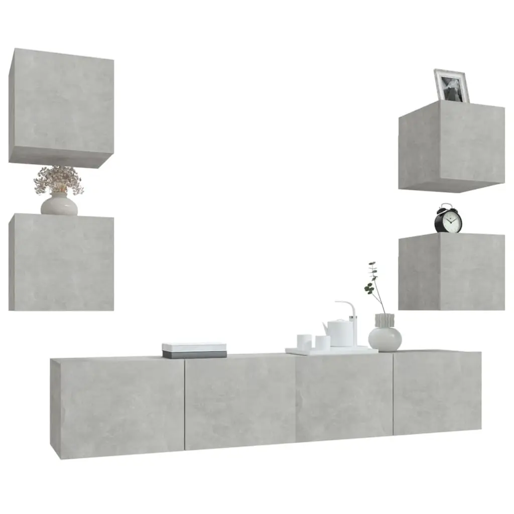 Vidaxl Tv Cabinet Set Set Of 6 Concrete Grey Engineered Wood Medium