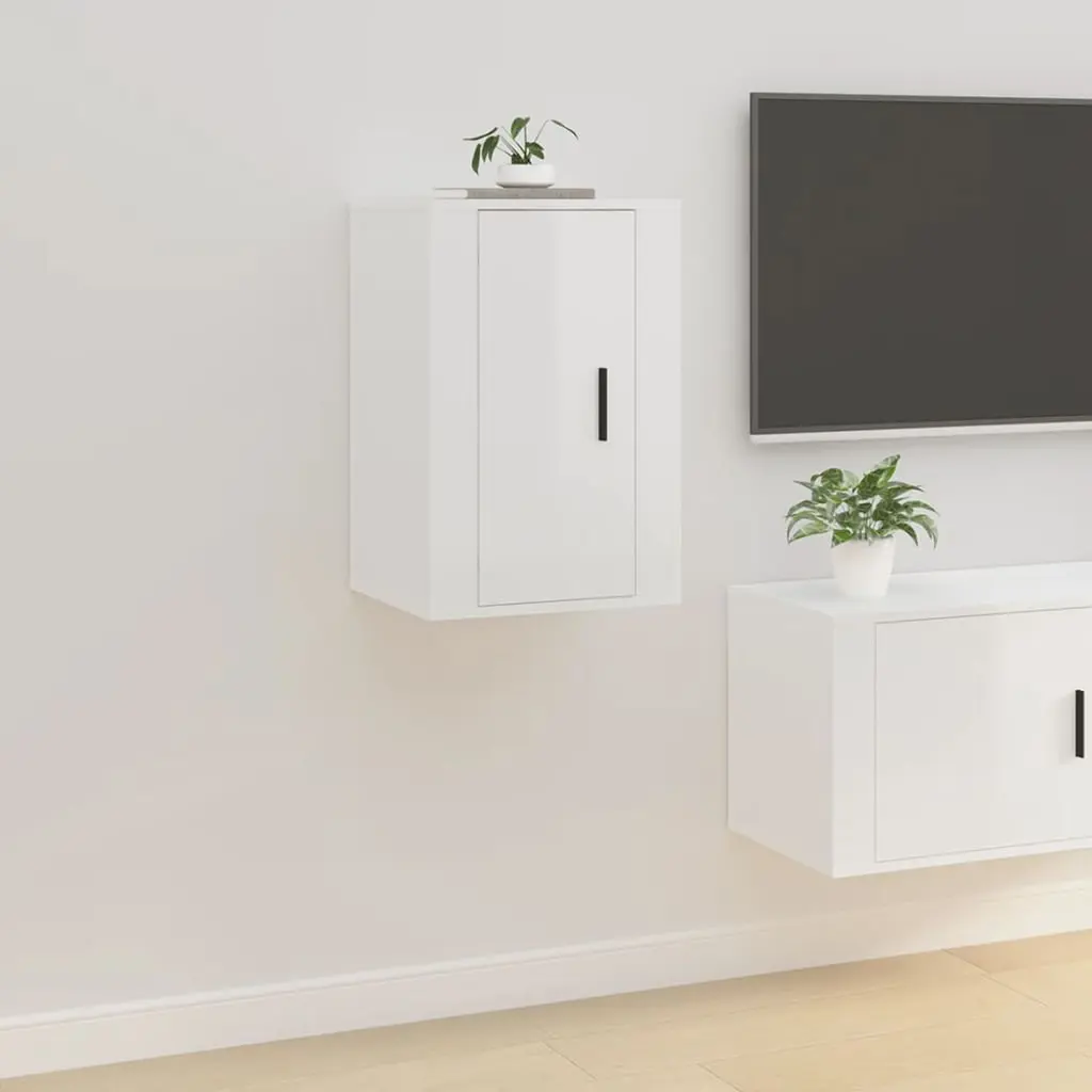 Vidaxl Wall Mounted Tv Cabinet Set Of 2 High Gloss White Engineered Wood