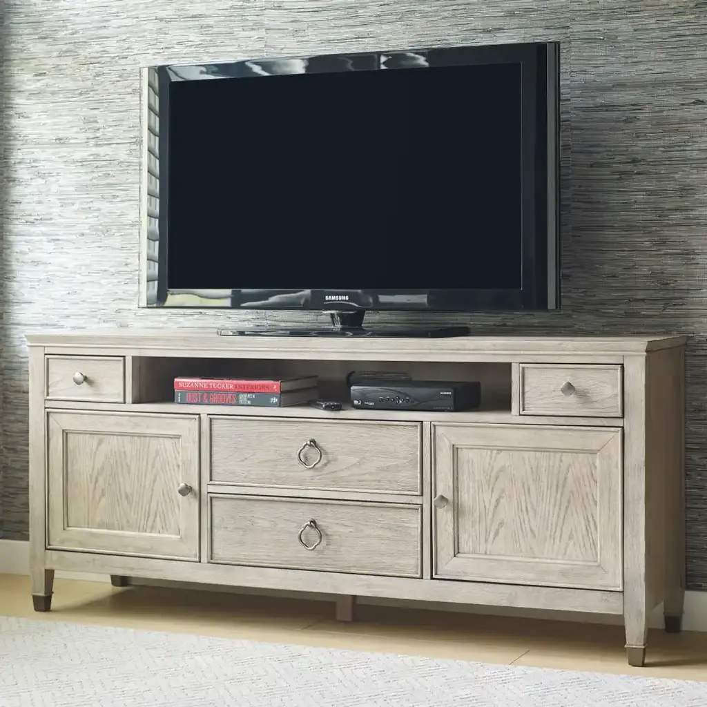 The Vista Biscayne Entertainment Console seamlessly marries style and functionality, becoming the centerpiece of your living space. Crafted from luxurious Flat Cut White Oak with Split Heart Veneers, this console exudes natural elegance and warmth. Its thoughtful design features an open compartment perfectly sized for your soundbar, ensuring optimal audio performance. Four spacious drawers provide ample storage for media accessories, while two doors conceal adjustable shelves, offering versatile organization options for your entertainment needs. The console's clean lines and rich wood grain elevate your home theater setup, creating a sophisticated backdrop for movie nights and family gatherings. Whether housing your TV, displaying cherished decor, or storing media essentials, the Vista Biscayne Entertainment Console delivers both beauty and practicality in one stunning piece.