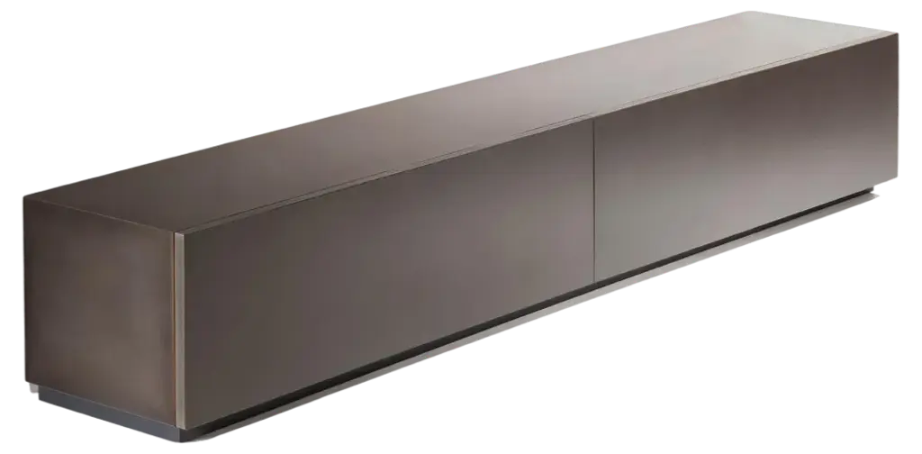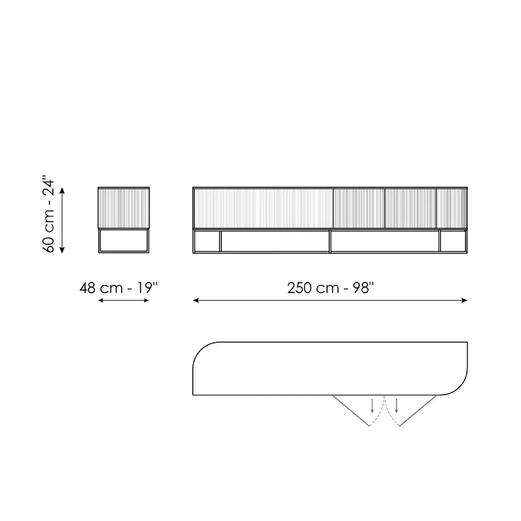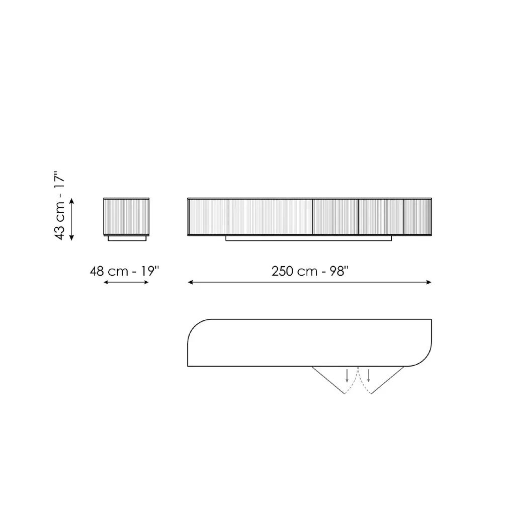 Introducing the Wavy Wooden TV Stand from Bonaldo Dune. The sleek and modern design features a wavy wooden surface that creates a unique play of light and shadow. Store your books and decor in the open area, and hide away clutter in the closed section. Available in elegant color combinations with a metal base or plinth base. Elevate your living space with this exclusive and sophisticated TV stand.