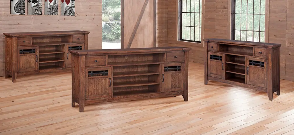 The Whistler 64" entertainment center is in the American shaker style with hints of contemporary and rustic blended together.