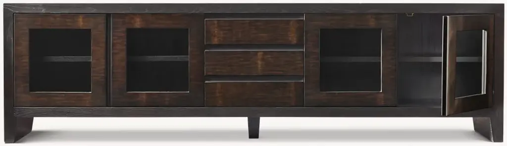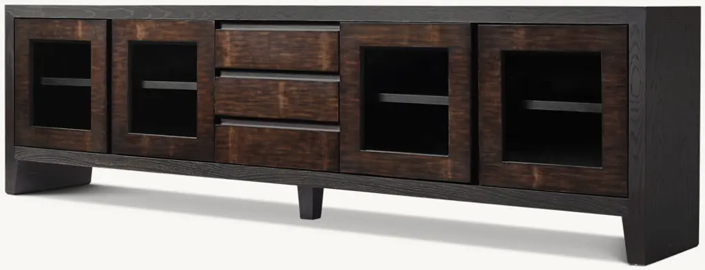 WYETH SPLIT BAMBOO GLASS 4-DOOR MEDIA CONSOLE WITH DRAWERS