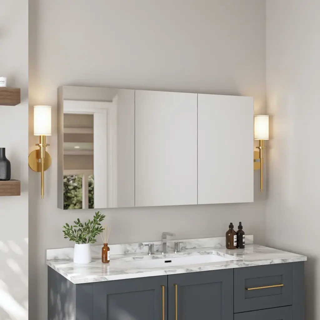 48'' W X 26'' H Surface Mount Frameless 3 Door Medicine Cabinet And 2 Adjustable Shelves