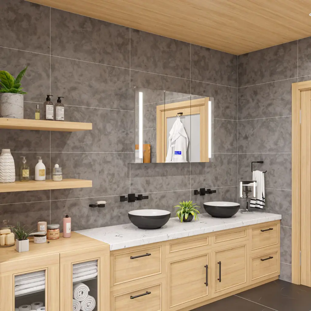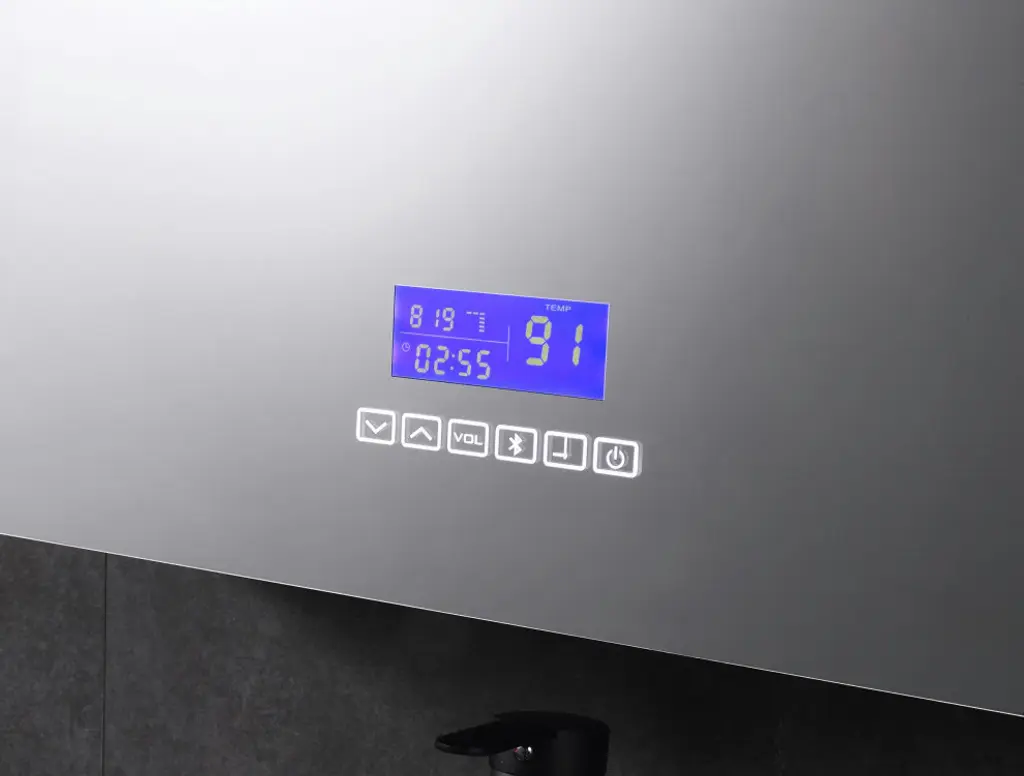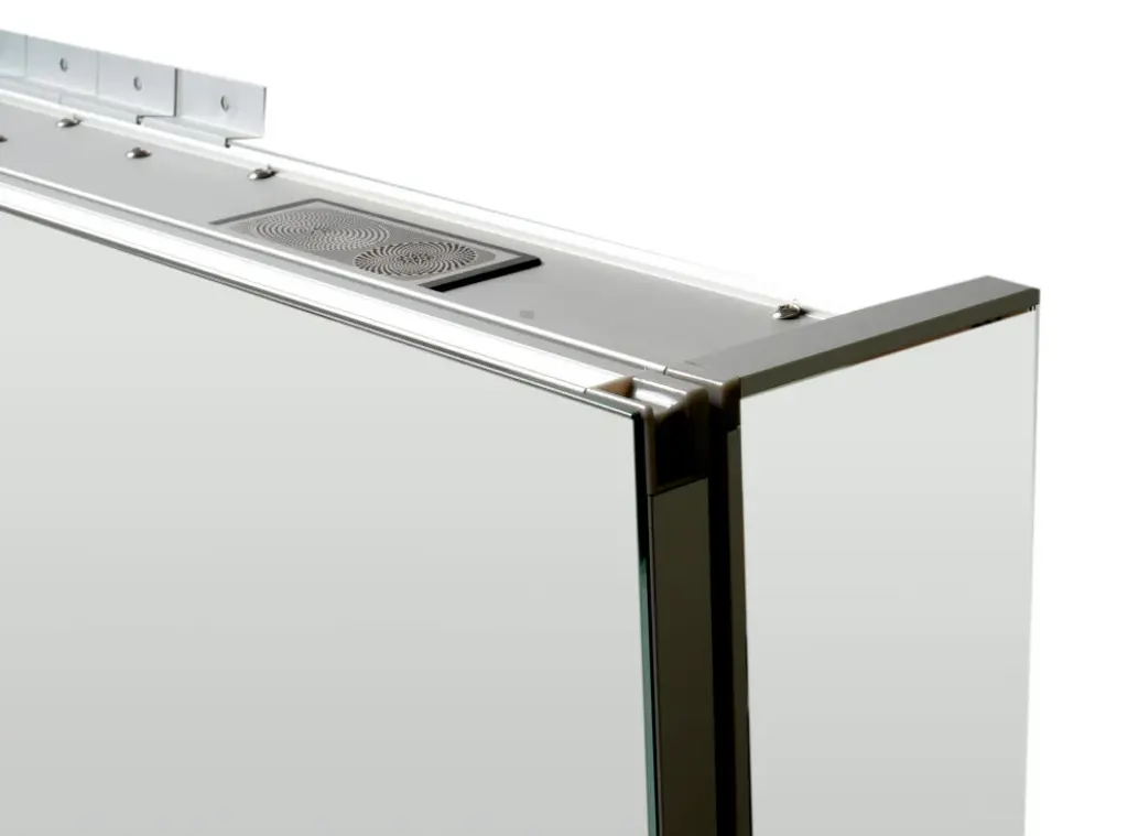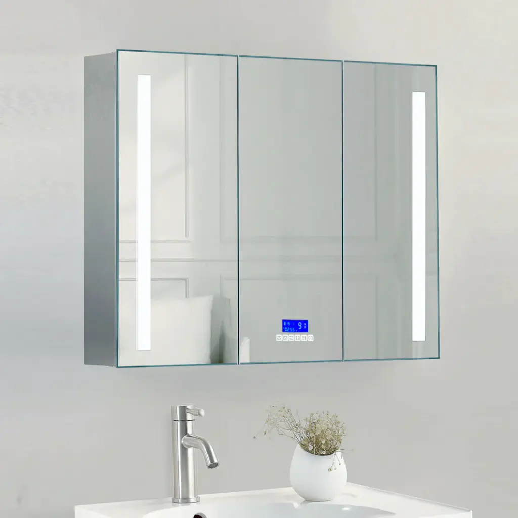 Featuring bluetooth connectivity for playing music through the built in speakers. Digital clock and room temperature shown on the screen. Defogger function makes sure that your mirror won''t fog up no matter how long of a shower you take :)Includes 4 adjustable height 1/4" thick (6mm) tempered glass shelves that are 3 1/8" (80mm) deep.Wall mounting hardware included. Hardwire connection to power without a plug.High quality aluminum cabinet body covered with mirrors inside and out.Includes electrical outlet with two standard plugs and 2 USB plugs.The defogger and the light turn on/off together on the same switch. So if the light is on, the defogger will be on as well.Energy efficient 3,200 lumens LED lighting strip. With a light temperature of 6,500k which is very white.Triple swinging door with mirror on both sides. Soft self closing door hinges by the top quality DTC brand.UL approved electrical components. Meets IP44 waterproof standard.
