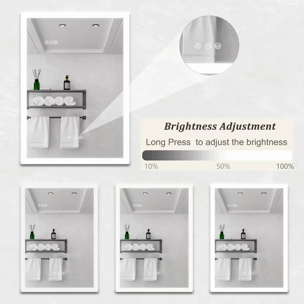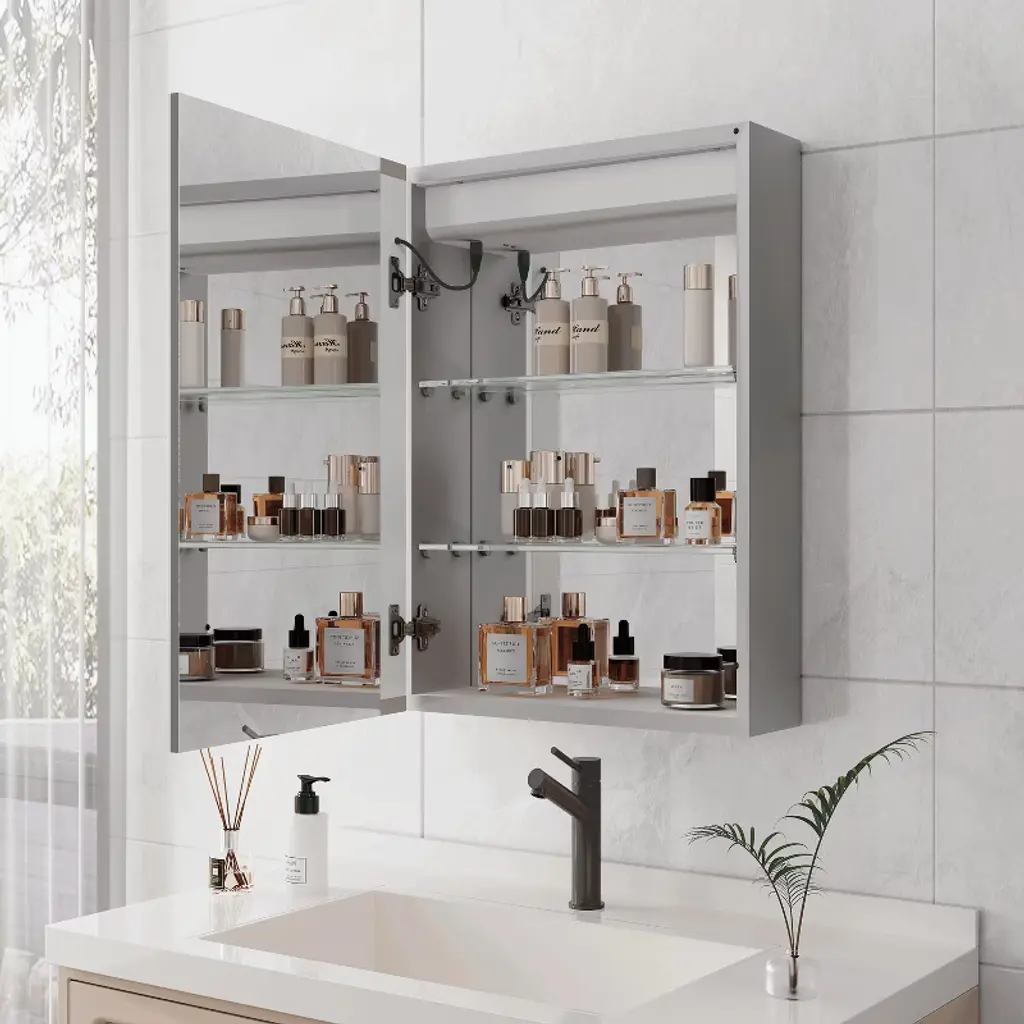 Enhance your bathroom experience with this versatile LED Medicine Cabinet. Designed for modern living, it features adjustable brightness and color temperature to suit your preferences. The integrated defogger ensures a clear view even after hot showers, while the digital clock and temperature display keep you informed at a glance. Ideal for contemporary bathrooms, this cabinet is crafted from high-grade aluminum and offers a sleek, surface-mounted design.