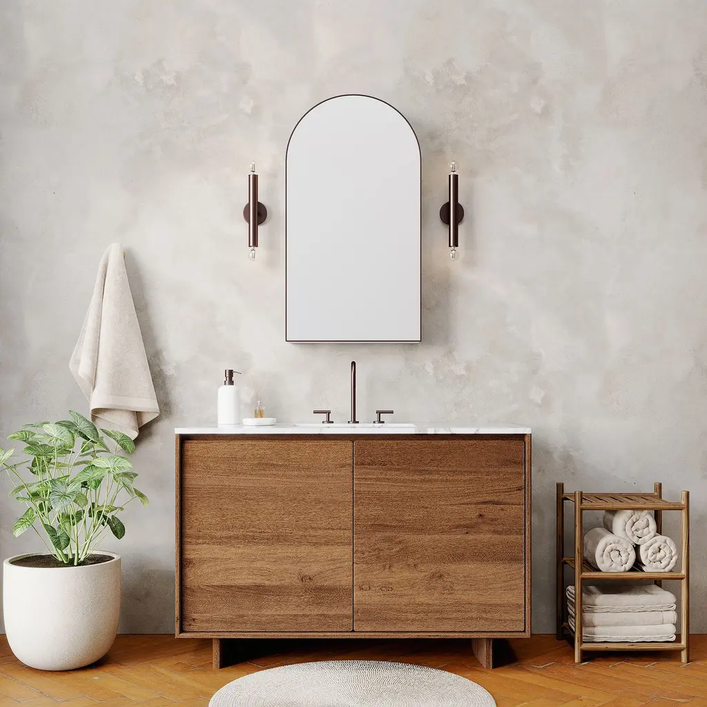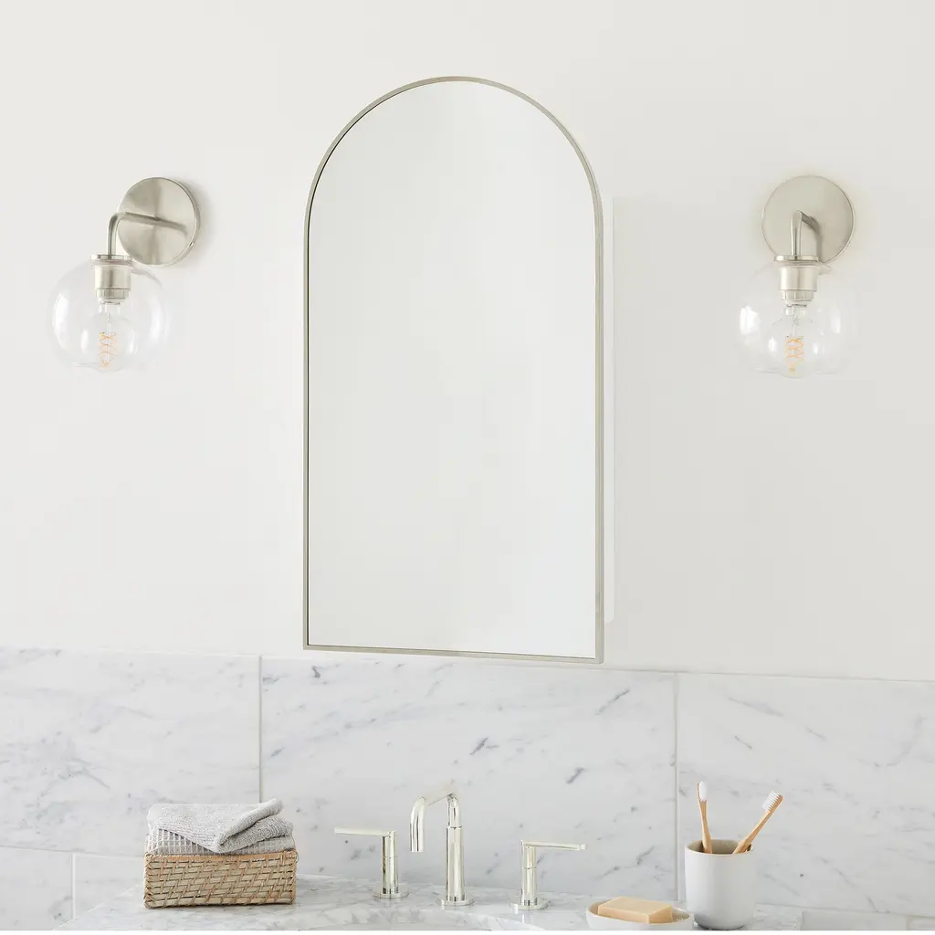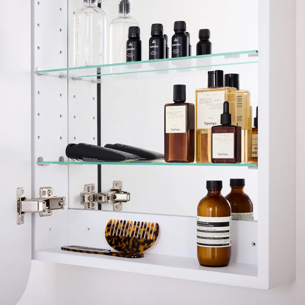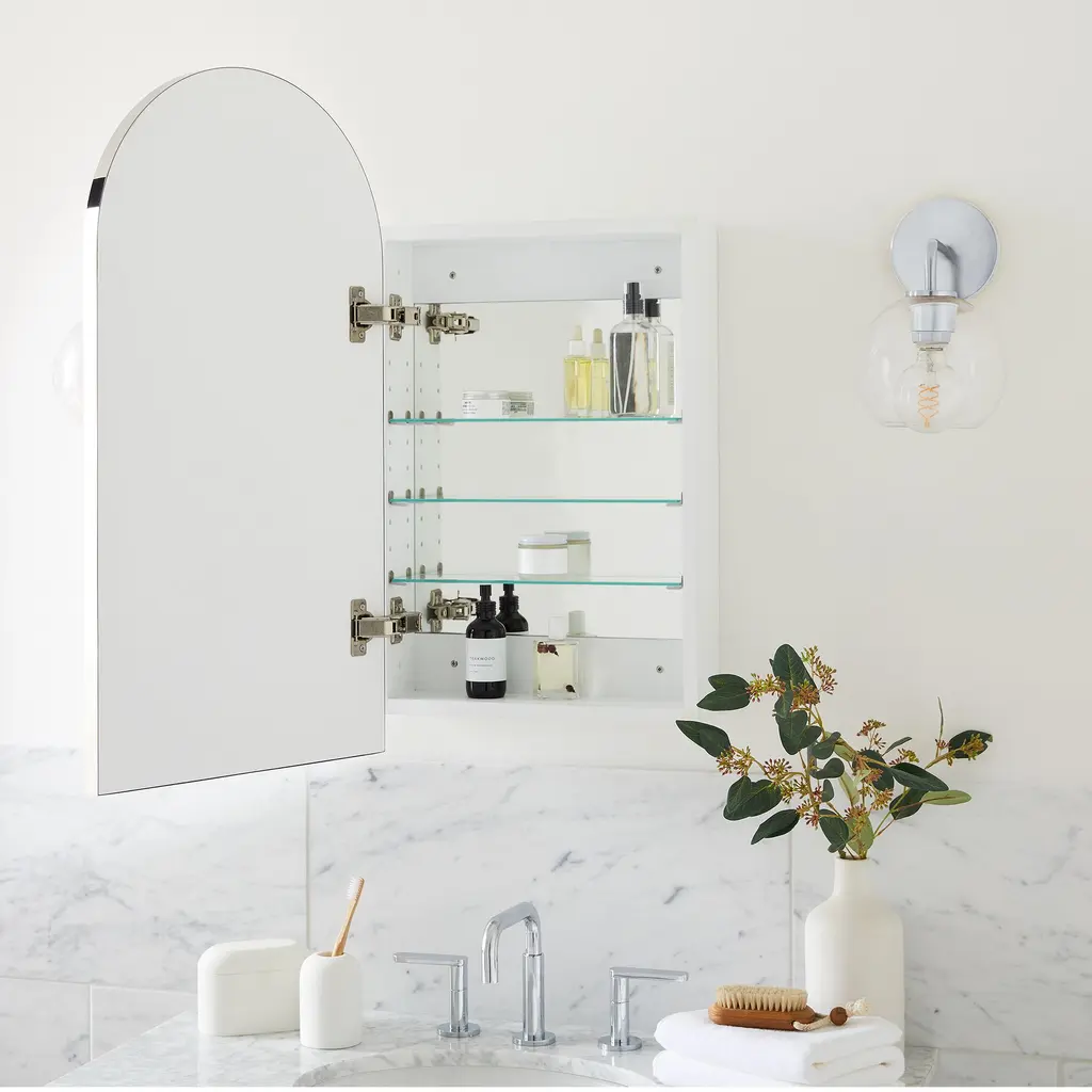 Its unique arched design. The dual mount options. Extra storage for all your toiletries. Made of bathroom-safe materials.