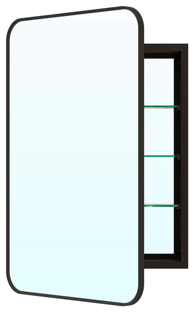 Black Aluminum Medicine Cabinet, Reversible, Wall-Mounted, Recessed Installation