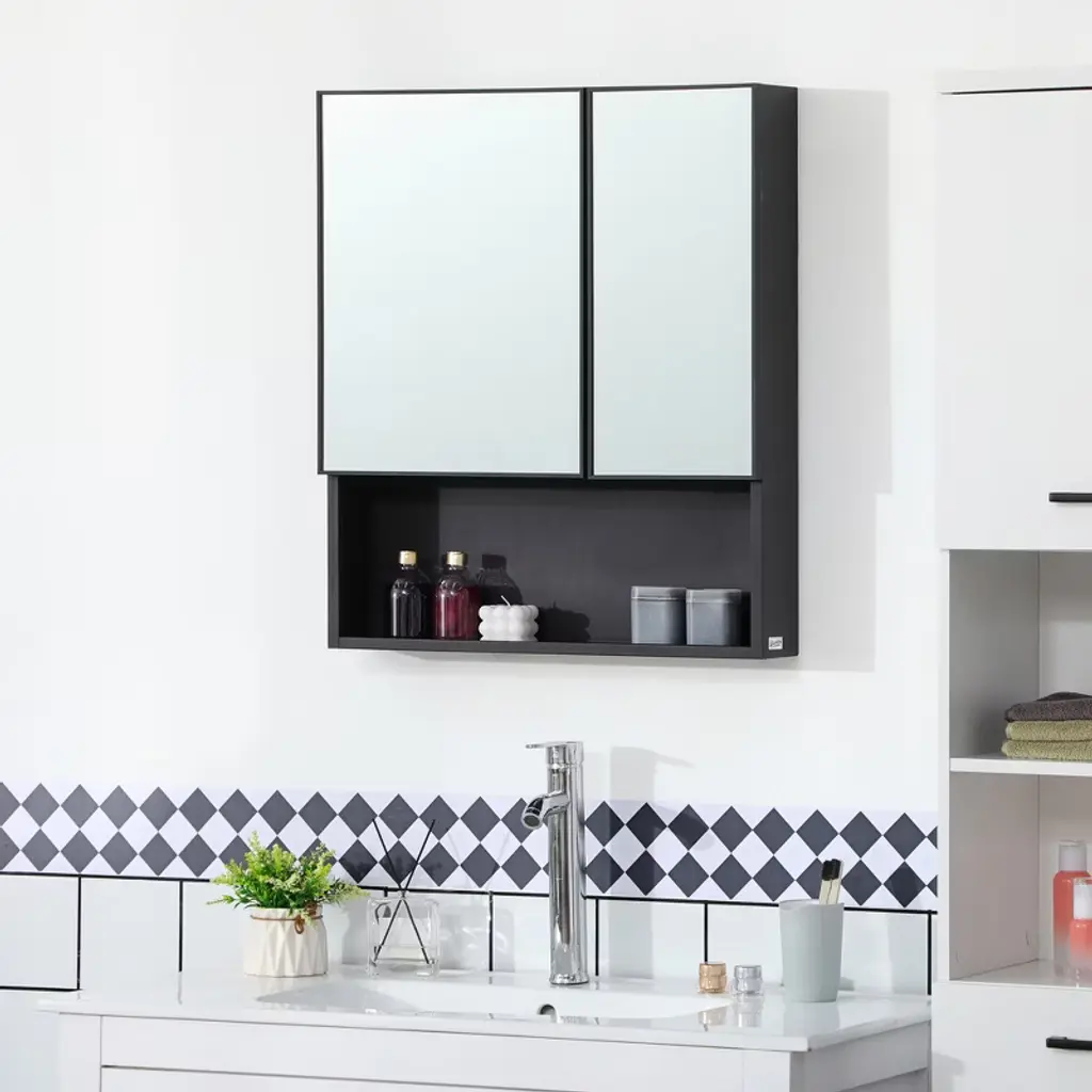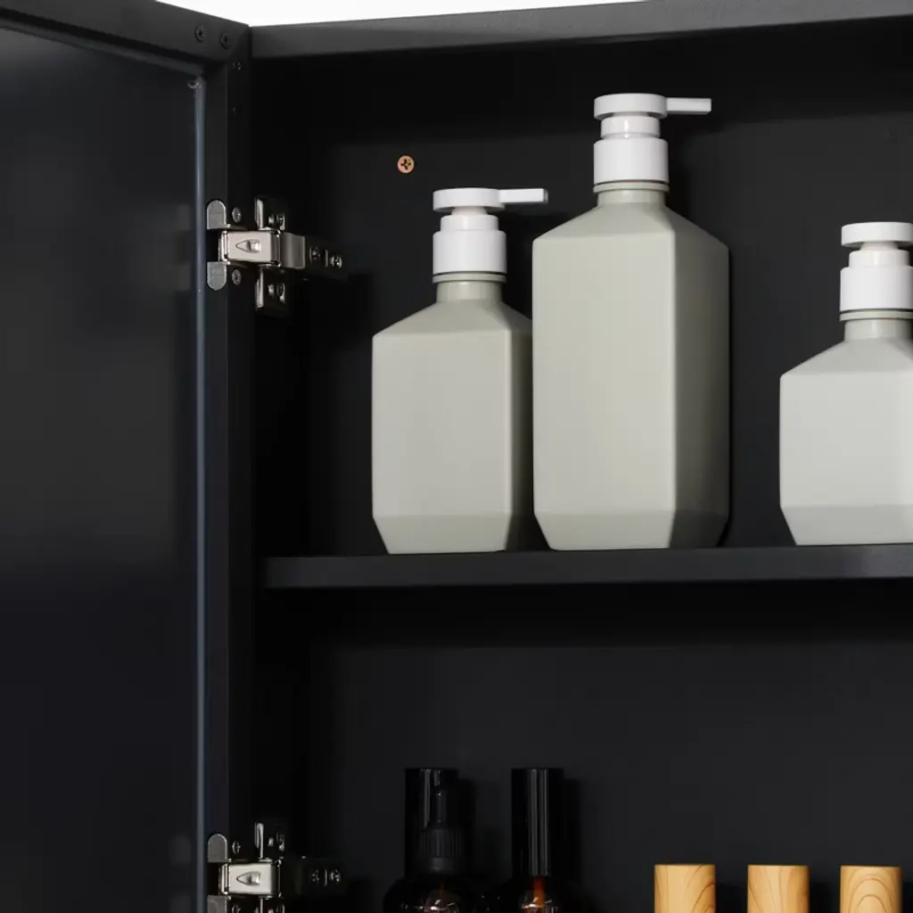Simple and modern with a sleek and elegant black frame, this contemporary medicine cabinet is easy to match.