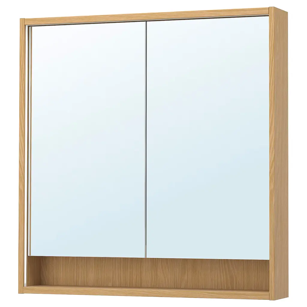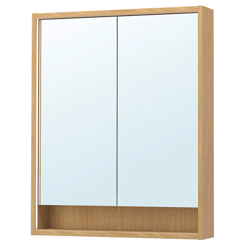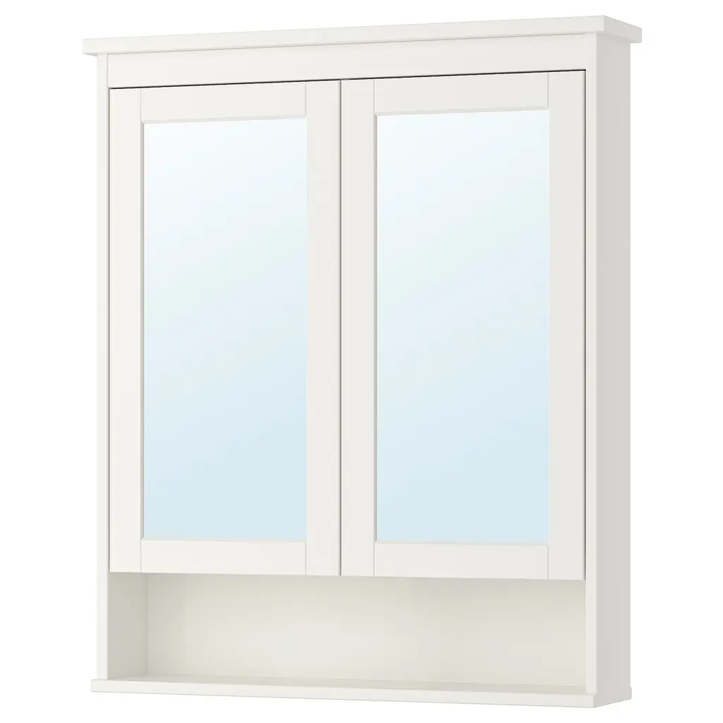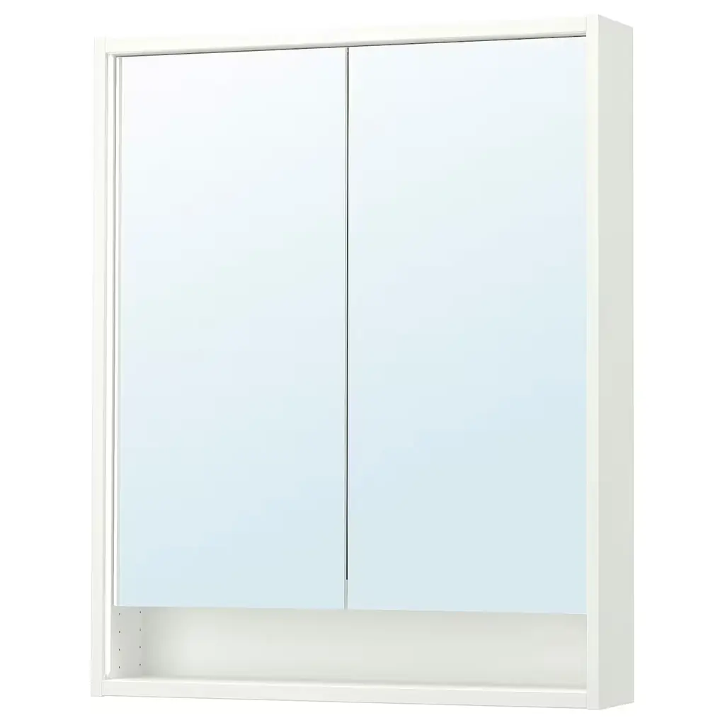FAXÄLVEN Mirror cabinet w built-in lighting - white 24x6x37 ". Dimmable with RODRET wireless dimmer/power switch, sold separately. Integrated lighting around the outside and the inside makes it easier to see yourself when preparing for the day ahead. This cabinet is to be wall mounted.
