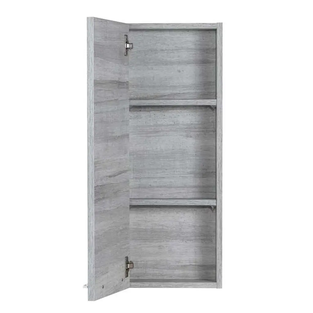 The Kato 12" W x 30" H frameless medicine cabinet is here to upgrade your bathroom storage. Designed to optimize your wall space, this cabinet combines functionality and style, making it a perfect addition to any bathroom. Crafted in Canada from engineered wood, its clean-lined design and dark gray finish effortlessly complement any decor. The slim aluminum bar pull opens to reveal three adjustable shelves, ideal for storing toiletries, perfumes, and toothbrushes. Featuring soft-close hinges, this wall cabinet ensures a quiet and smooth closing experience. Enhance your bathroom organization with this stylish and practical cabinet, designed for modern living.Bullet Features:PROUDLY MADE IN CANADA: This medicine cabinet is proudly manufactured in Canada, representing the highest standards of cabinetry and woodworkingMODERN DESIGN: The Kato 12" W x 30" H frameless medicine cabinet boasts a clean finish, seamlessly blending with any bathroom decorADJUSTABLE STORAGE: Three shallow, adjustable shelves provide ample space for your bathroom essentials, this bathroom wall cabinet ensures a clutter-free environmentDURABLE CONSTRUCTION: Made from high-quality engineered wood, this wall-mounted bathroom cabinet is built to last, providing long-term reliabilitySOFT CLOSE FEATURE: The soft-close hinges on the cabinet door offer a smooth, quiet closing action, the medicine cabinets for the bathroom enhance your experienceSLEEK HARDWARE: The slim chrome-finished bar pull of our wall-mounted cabinet adds a touch of sophistication while allowing easy access to your stored itemsEASY INSTALLATION: The bathroom cabinet includes all necessary mounting hardware, making the installation process straightforward and hassle-freeSpecifications:Product Type: Medicine cabinetMaterial: Manufactured WoodShelves Included: YesDoors Included: YesAvailable Colors: Organic, Dorato, SohoTipover Restraint Device Included: NoImported: YesDurability: No Additional DurabilityAdjustable Shelves: YesHandle Finish: ChromeAvailable Finish Option: Brown, Dark Gray, Light GrayHandle Material: ChromeDoor Material: Manufactured WoodAssembly Required: NoSuggested Number of People for Assembly / Installation: 2Additional Tools Required (Not Included): Not IncludedAvoid Power Tools: YesInstallation Required: YesMounting / Installation Type: WallSoft Closing: Soft Close Door Hinges & Drawer GlidesOverall Dimensions: 30" H X 12" W X 5" DOverall Product Weight: 20 lb.