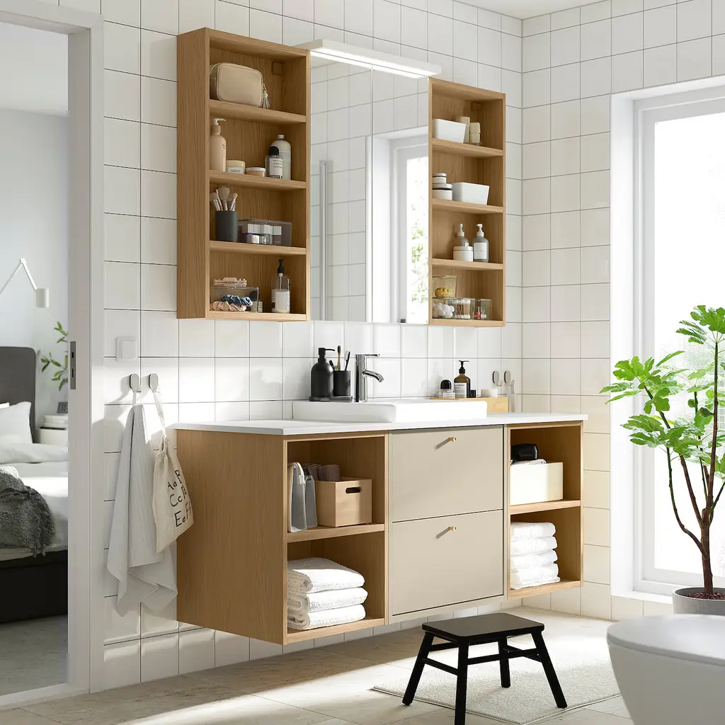 LETTAN Mirror cabinet with doors - mirror effect/mirror glass 24x6x37 ". A mirror cabinet above the wash-basin eases morning routines and makes your bathroom feel bigger and brighter. This cabinet with shelves keeps often used items hidden but within easy reach. This cabinet is to be wall mounted.