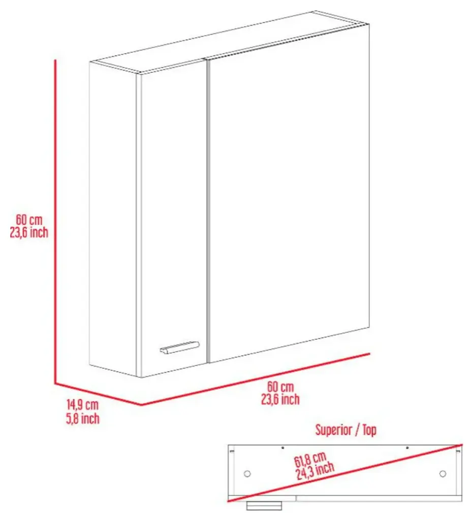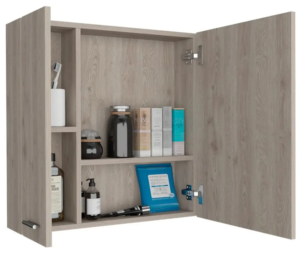 PragueMedicine Cabinet, this unique and elegant medicine cabinet is the perfect solution for your bathroom! With its contemporary design, it will add a touch of elegance to your bathroom while also providing you with extra storage space. You can use it on any wall, even in the smallest bathroom, of its ergonomic size. Includes an ample mirror cabinet with single Door, four interior spacious shelves (11,12''''H X 10,5''''HX 15,1''''H X 66''''H X 5,9''''W X 40,2''''W) with a variety of colors. Designed with an elegant light gray manufactured wood finish.Dimensions:Height: 23,6"Width: 23,6Depth: 5,8Furniture Type: Ready to assemble (full assembly required).Certifications: CARB phase II compliant TSCA Title VI Compliant.Warranty: 1-year warranty coverage in wooden parts- 1-year warranty coverage in hardware pieces since its manufacturing date is found in the lot number printed in the product box.Shipment details: Free shipping to the 48 contiguous states - delivery time: Between 2 and 5 days depending on the customer''s location, season, and weather factors. Other details: This product does not include decorative or background elements; Check that the box is in good condition, and well packed, and check with the help of the manual that the corresponding parts have been included.
