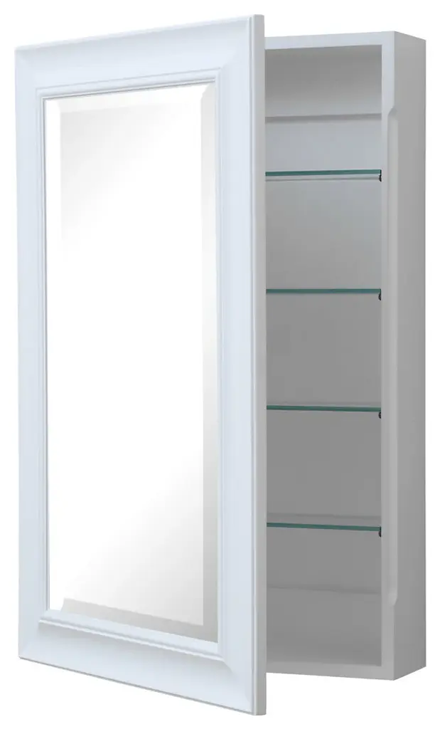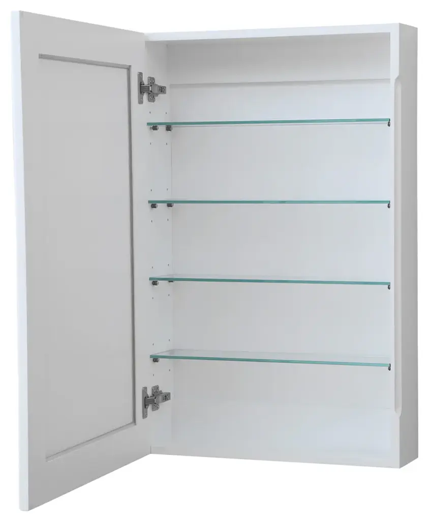 The Napa classic wall-mounted medicine cabinet is a perfect match for any of our bathroom vanities. This item features:- High-end construction. Made with 100% solid wood! No cheap particle board or MDF. - Hand painted using custom mixed paint and sealed with a protective lacquer for moisture resistance. Paint may slightly vary from batch to batch.- Concealed door hinges with soft-close function- Adjustable tempered glass interior shelves (assembly required)- Mirror with beveled glassDimensions: 22 in. wide x 34 in. high x 6 in. deep. Please see diagram for full dimensions.