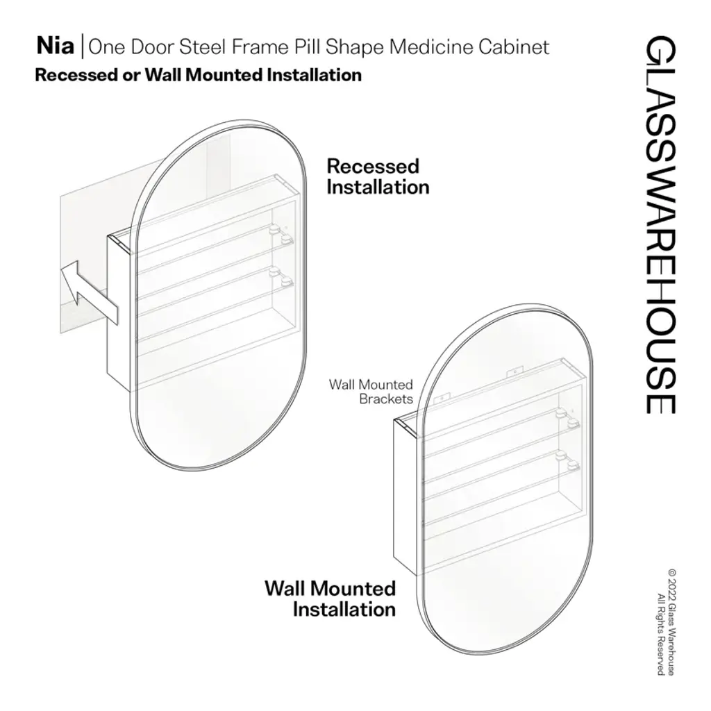 Simple and streamlined, the Nia medicine cabinet has a soft silhouette that exudes luxury and style. Graceful curves add inspiration, while the recessed design keeps your bathroom looking sleek and uncluttered with all your products tucked away out of sight.
