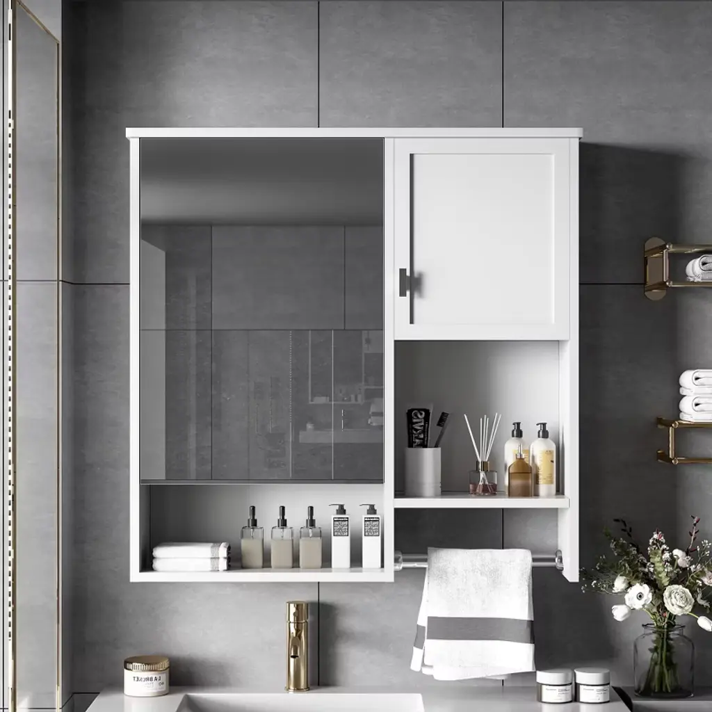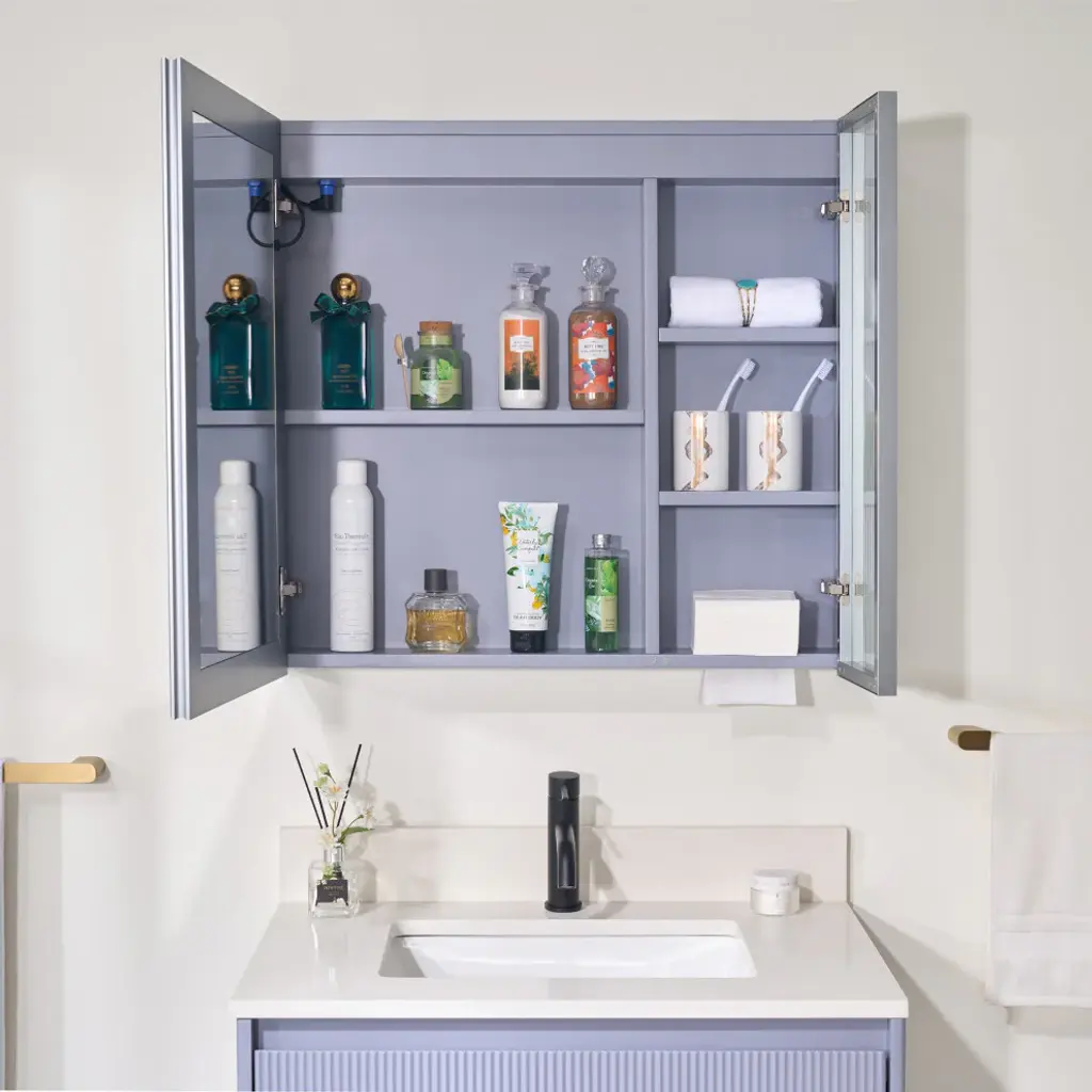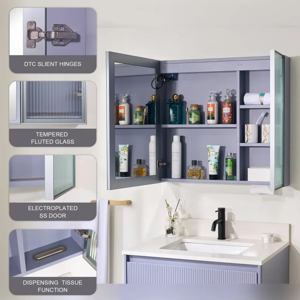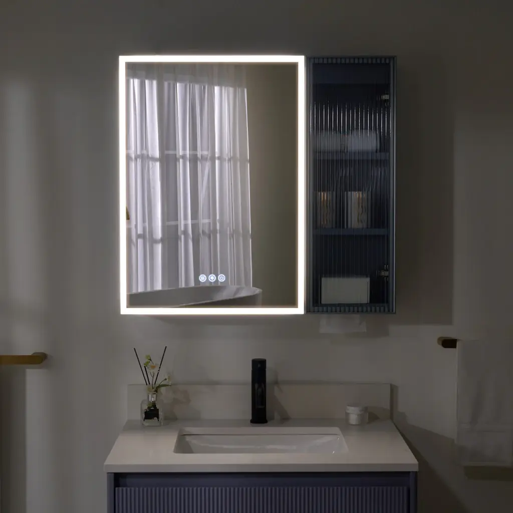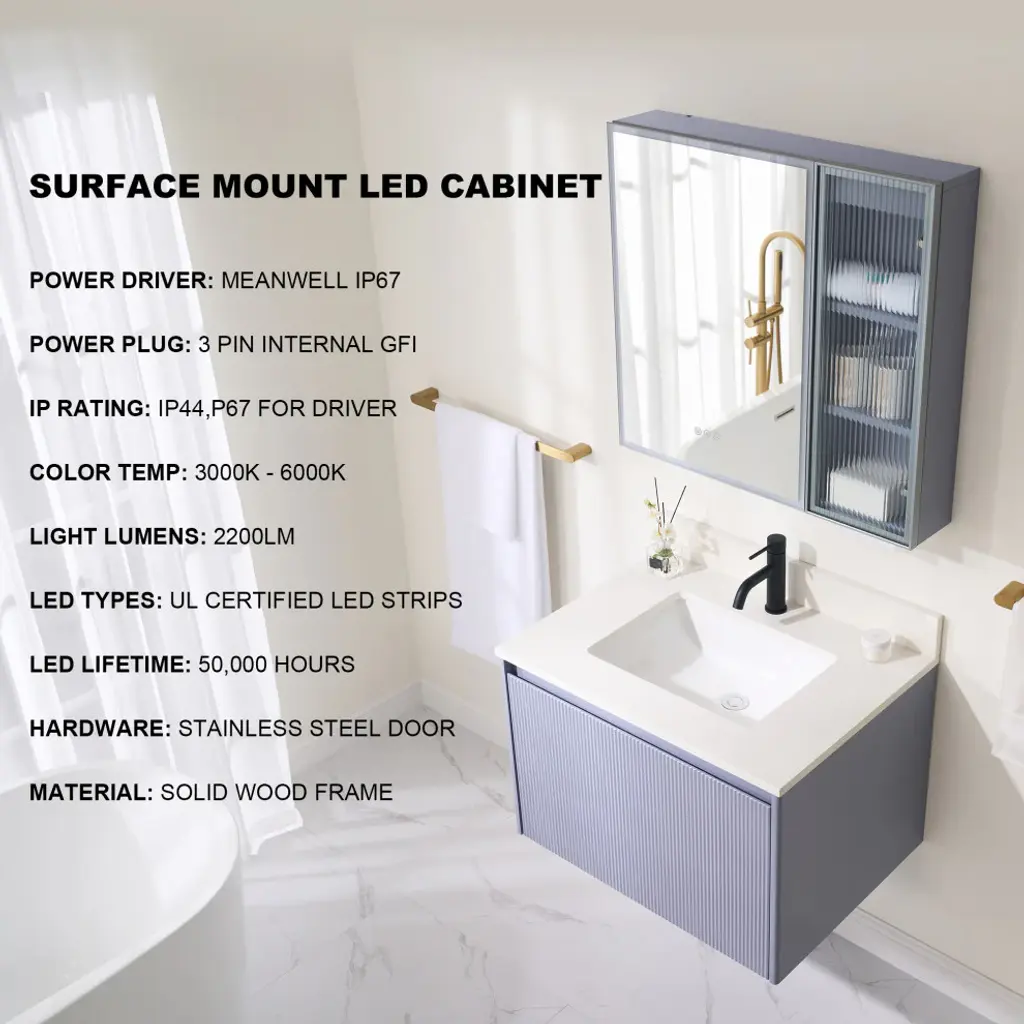 Our LED lighted medicine cabinet comes with 3 solid wood shelves, gives you the perfect custom storage solution to neatly tuck away all your bathroom essentials. Effortlessly adjust lighting using touch controls for on/off, defogging, and color/brightness settings, provide you and your family with a better skin care or make up experience. Featured with premium LED strip light, providing optimally bright bathroom vanity lighting. Tempred Fluted glass ensures durability and safety. DTC Door Hinges offer noiseless, elegant door closure. Wall-mounted Z bar installation kit make medicine cabinet more soild to hang up. It is the best idea for your bathroom!1. Light Temperature and Brightness Adjustable: Light temperature from 3000K-6000K, brightness from 10%-100%. Provide you an ideal light.2. Better Defogging: Built-in defogger provides better defogger performance, defog faster.3. Well-made: Tempred Fluted glass ensures durability and safety; Electroplated stainless steel door frame for extra durability, adds a timeless elegance, and solid wood blend aesthetics.4. Silent Closure: DTC Door Hinges offer noiseless, elegant door closure. It will not disturb your family.5. Eco-Friendly Craftsmanship: Sustainably sourced wood with eco-paint promotes eco-friendly living.6. Large Storage Space: 2 shelves with mirrored door and 3 shelves with aluminum alloy frame glass door, provide extra large storage space and make your stuffs be organized.7. Effortless Setup: The included wall-mounted Z bar installation kit make installtion easier, and the medicine cabinet will be more solid to hang up.8. Two-year limited Warranty.