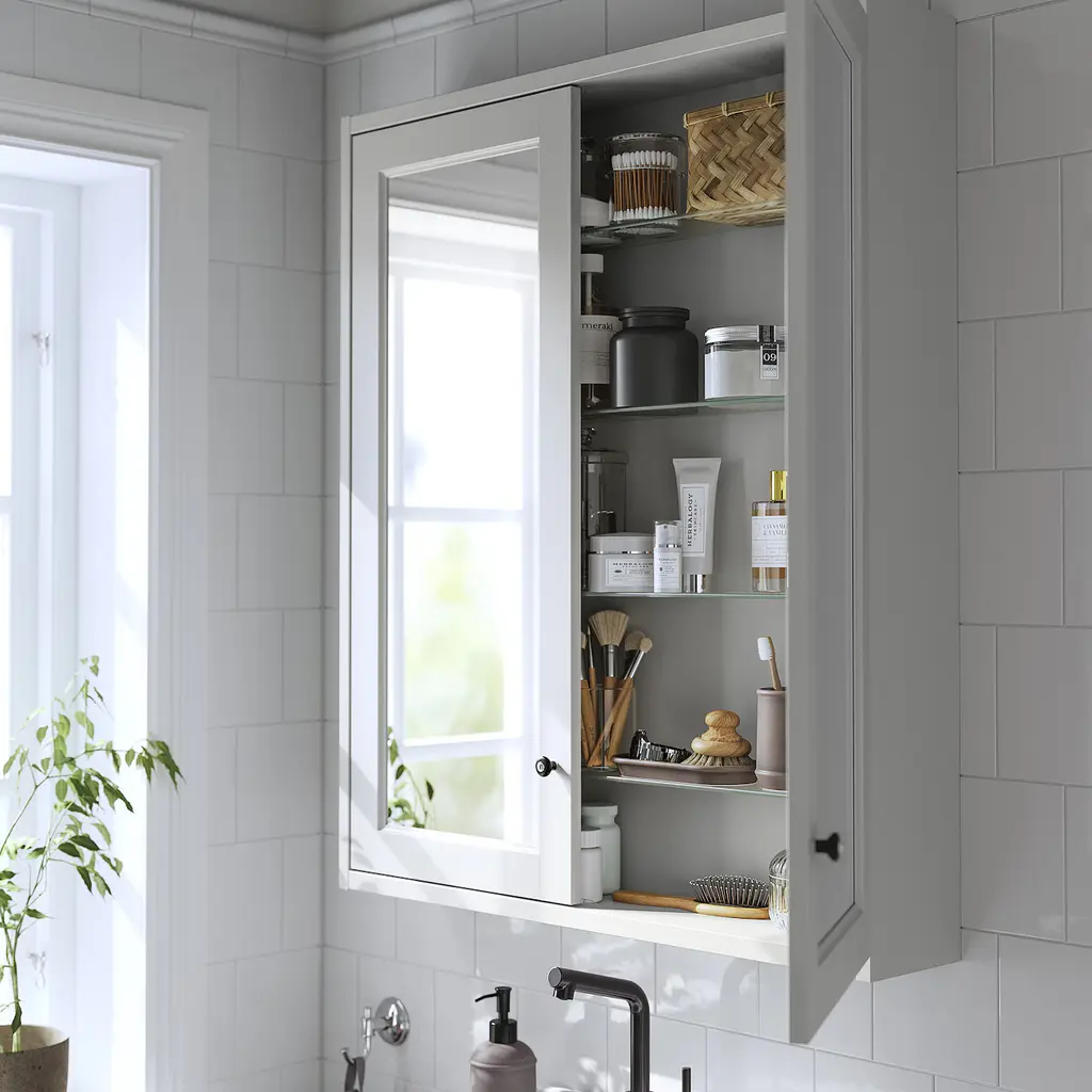 TÄNNFORSEN Mirror cabinet with doors - light gray 30x6x37 ". A mirror above the wash-basin eases morning routines while making your bathroom feel bigger and brighter. This cabinet with shelves puts bottles, jars and things often used within easy reach. This cabinet is to be wall mounted.