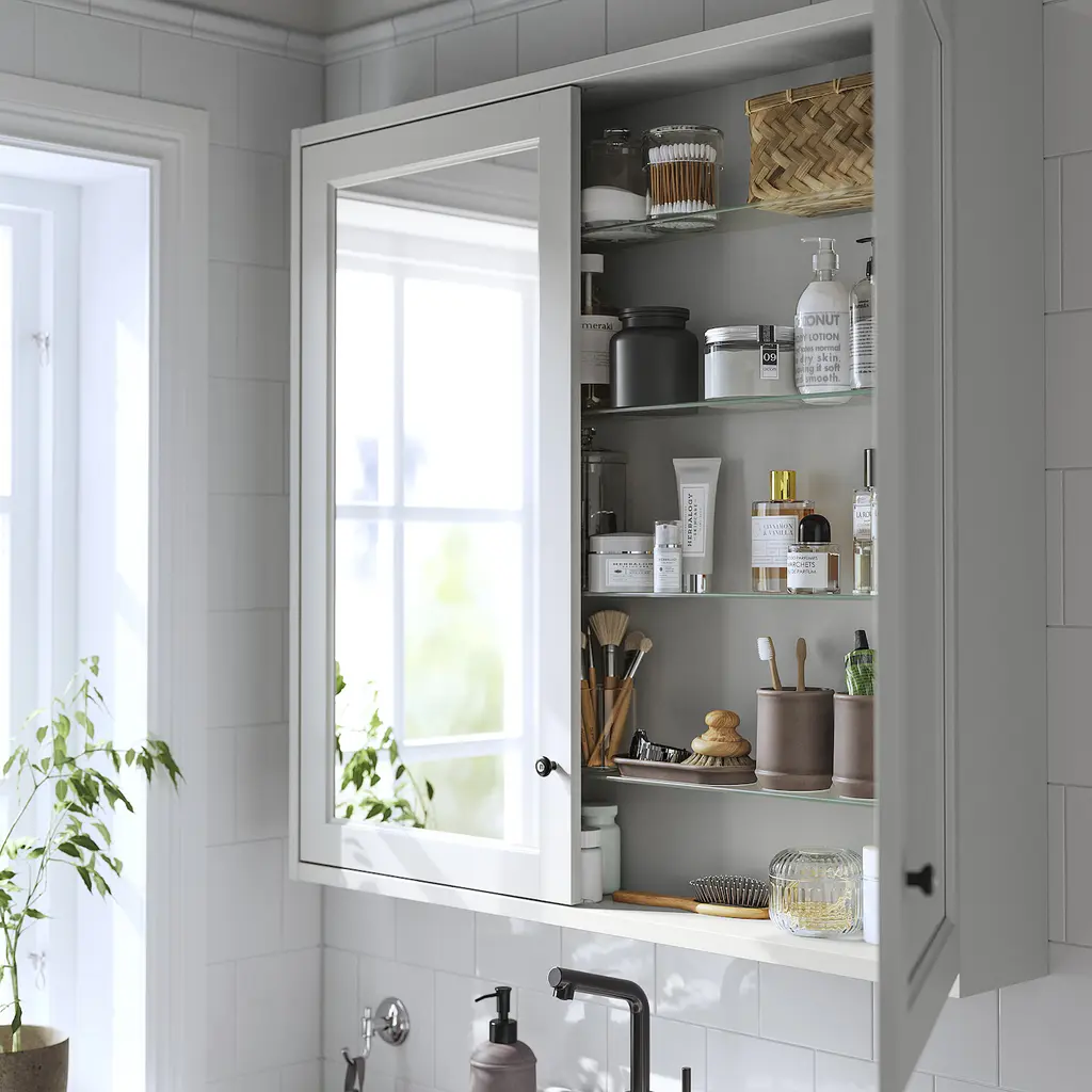 TÄNNFORSEN Mirror cabinet with doors - light gray 36x6x37 ". A mirror above the wash-basin eases morning routines while making your bathroom feel bigger and brighter. This cabinet with shelves puts bottles, jars and things often used within easy reach. This cabinet is to be wall mounted.