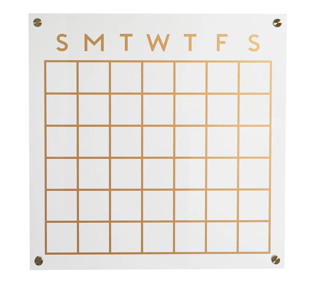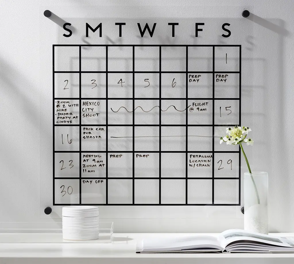 Sleek, simple, sensible: In two modern finish options, our modular dry-erase Acrylic Collection works like a charm. With a crystal-clear design, this sizable calendar lets you schedule out the month ahead while keeping your workspace open and airy.