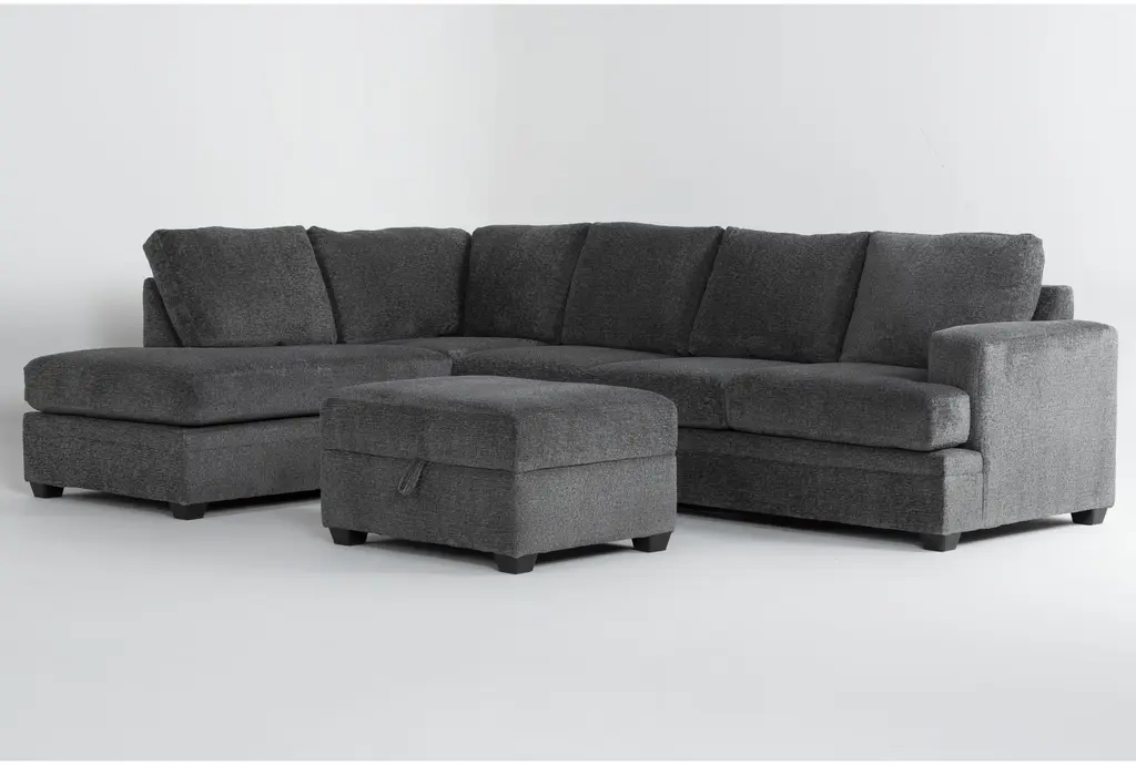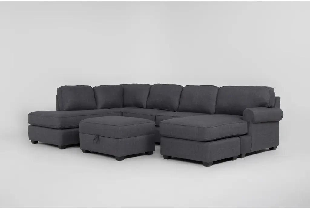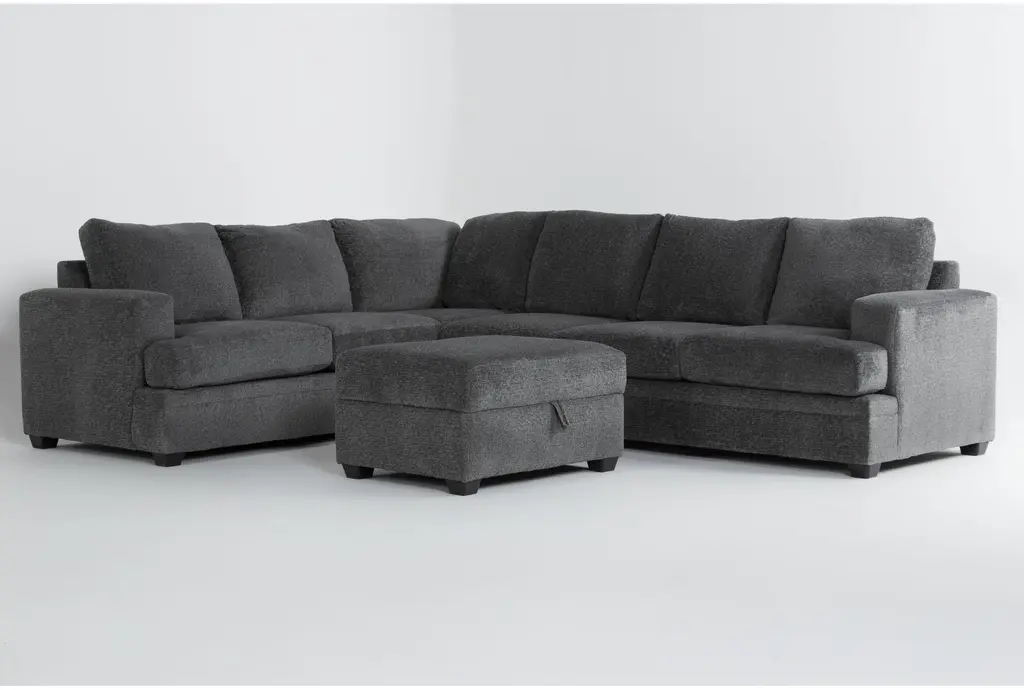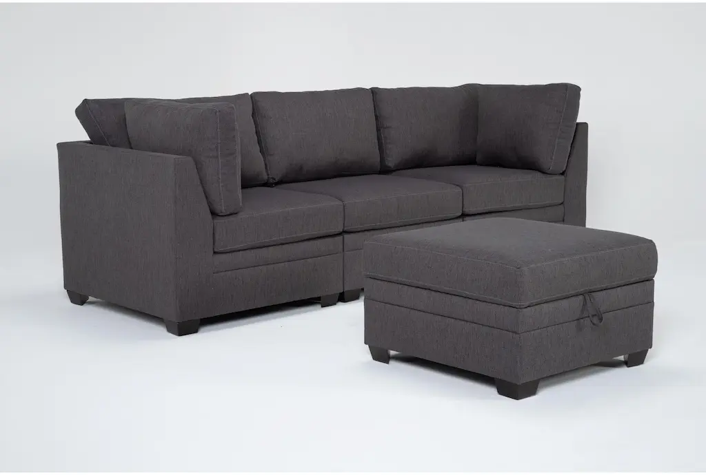 Solimar Graphite Grey Fabric 4 Piece Modular Sofa & Storage Ottoman