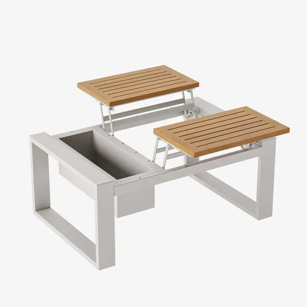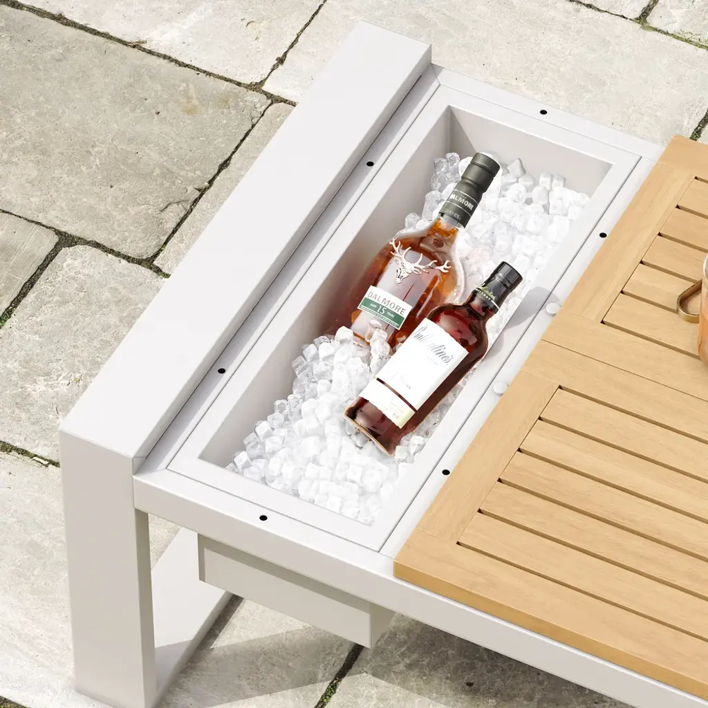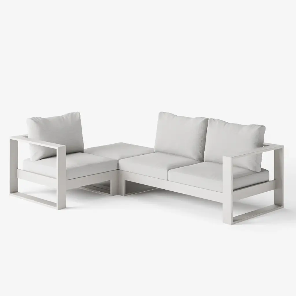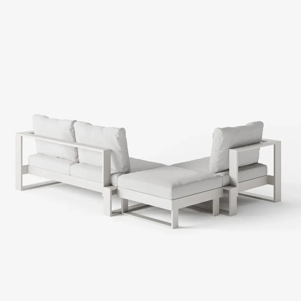 White aluminum meets warm acacia wood in a modular design for flexible outdoor comfort. Enjoy relaxed hours in the yard full of peace and joy. All materials are weatherproofed, so you need less maintenance and can spend more time outdoors.